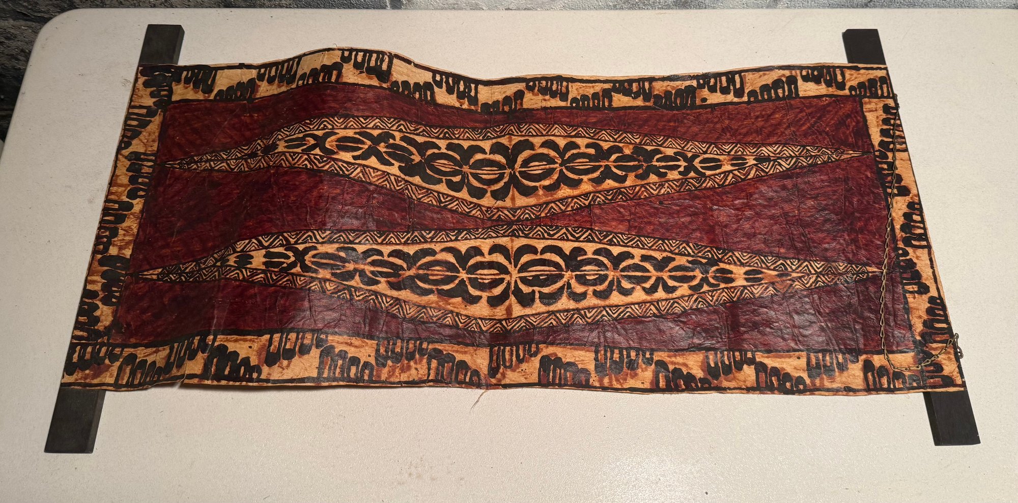 Polynesian Tapa Cloth With Traditional Geometric And Stylized Motifs