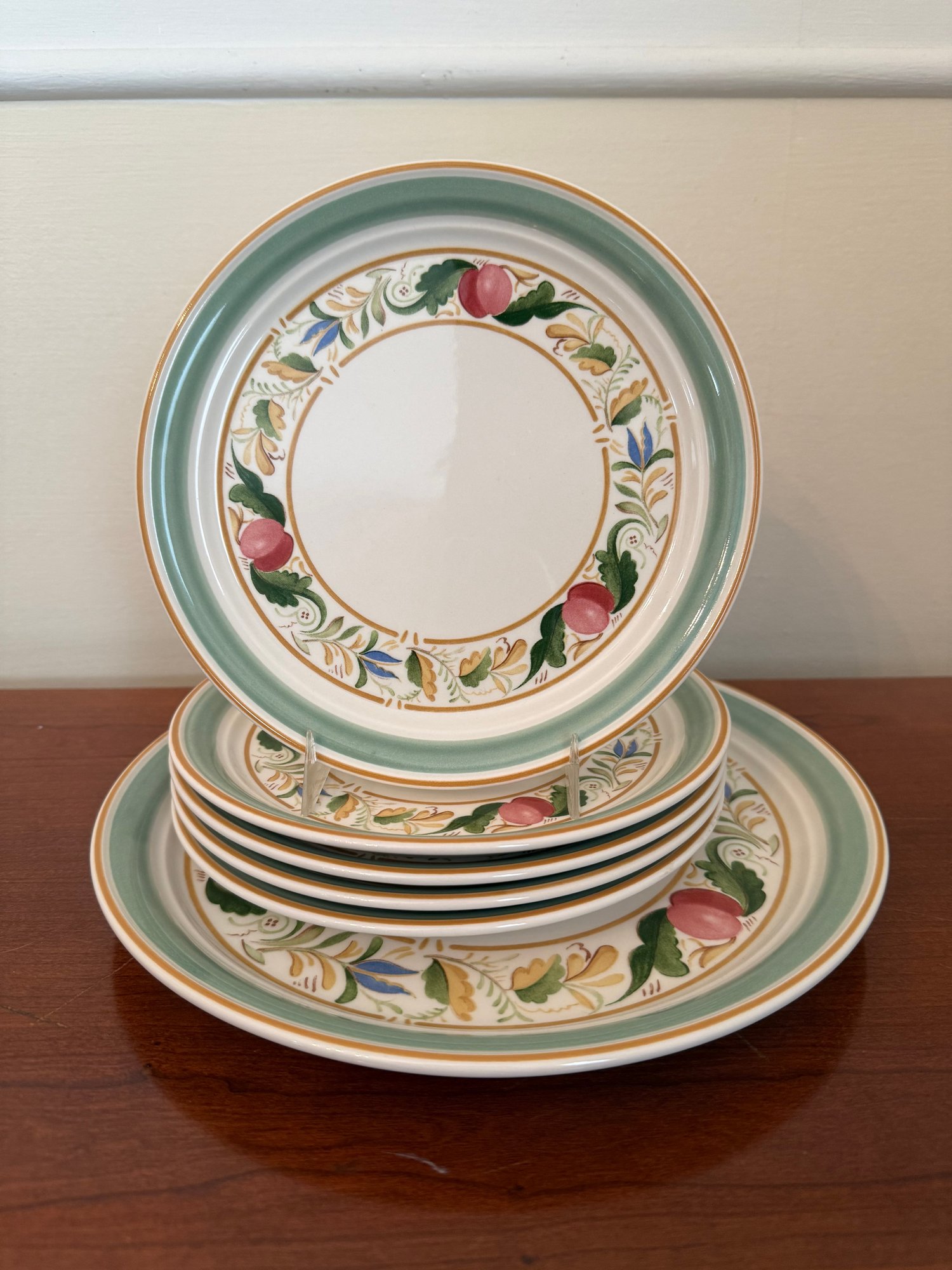 Noritake Ireland Ceramic Dinner Plates With Hand-painted Fruit And Floral Design