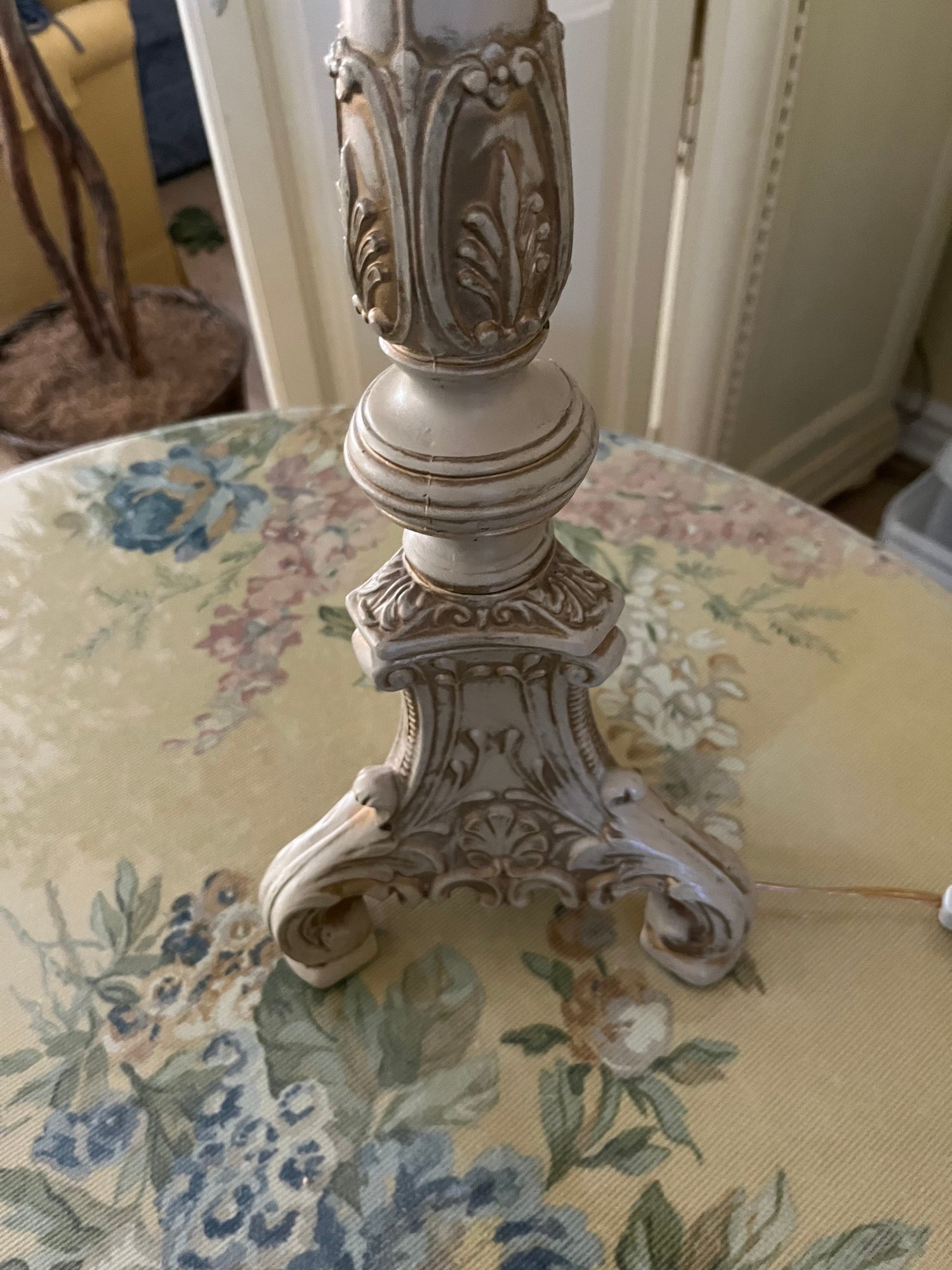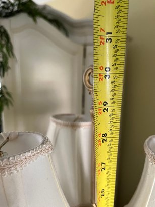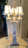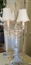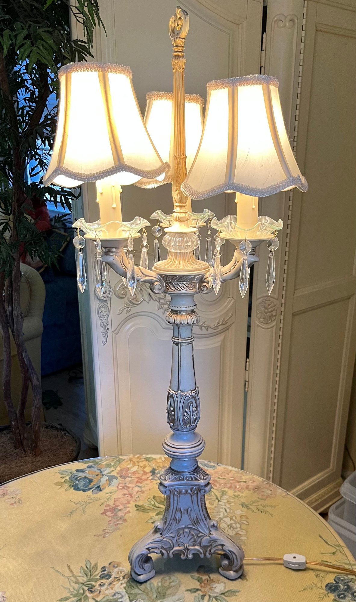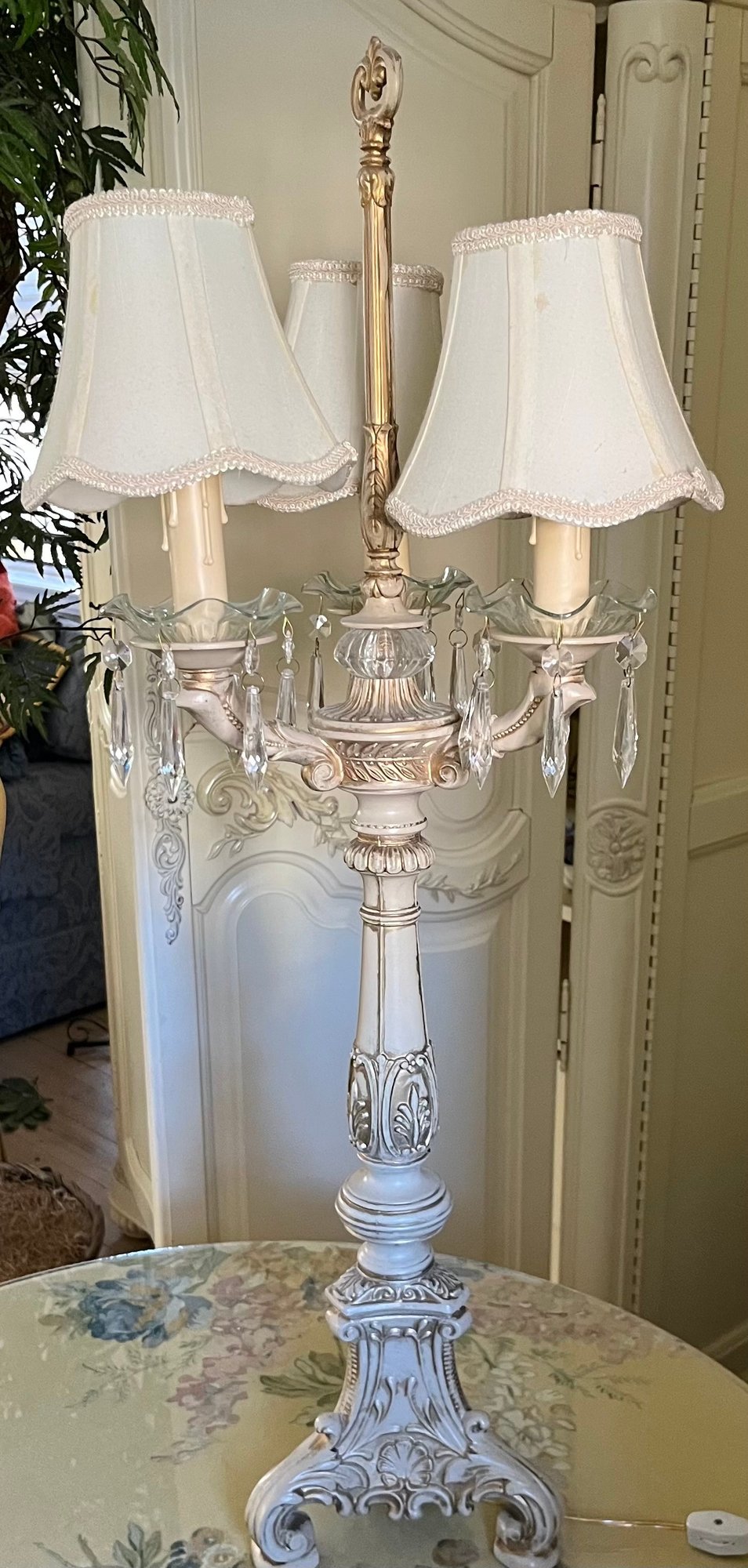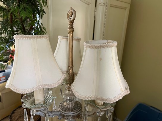 Ornate Multi-arm Table Lamp With Crystal Prisms And Distressed Finish
