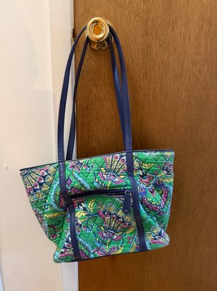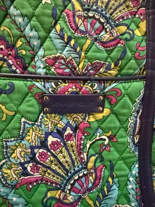 Quilted Cotton Vera Bradley Tote Bag With An Emerald Paisley Pattern
