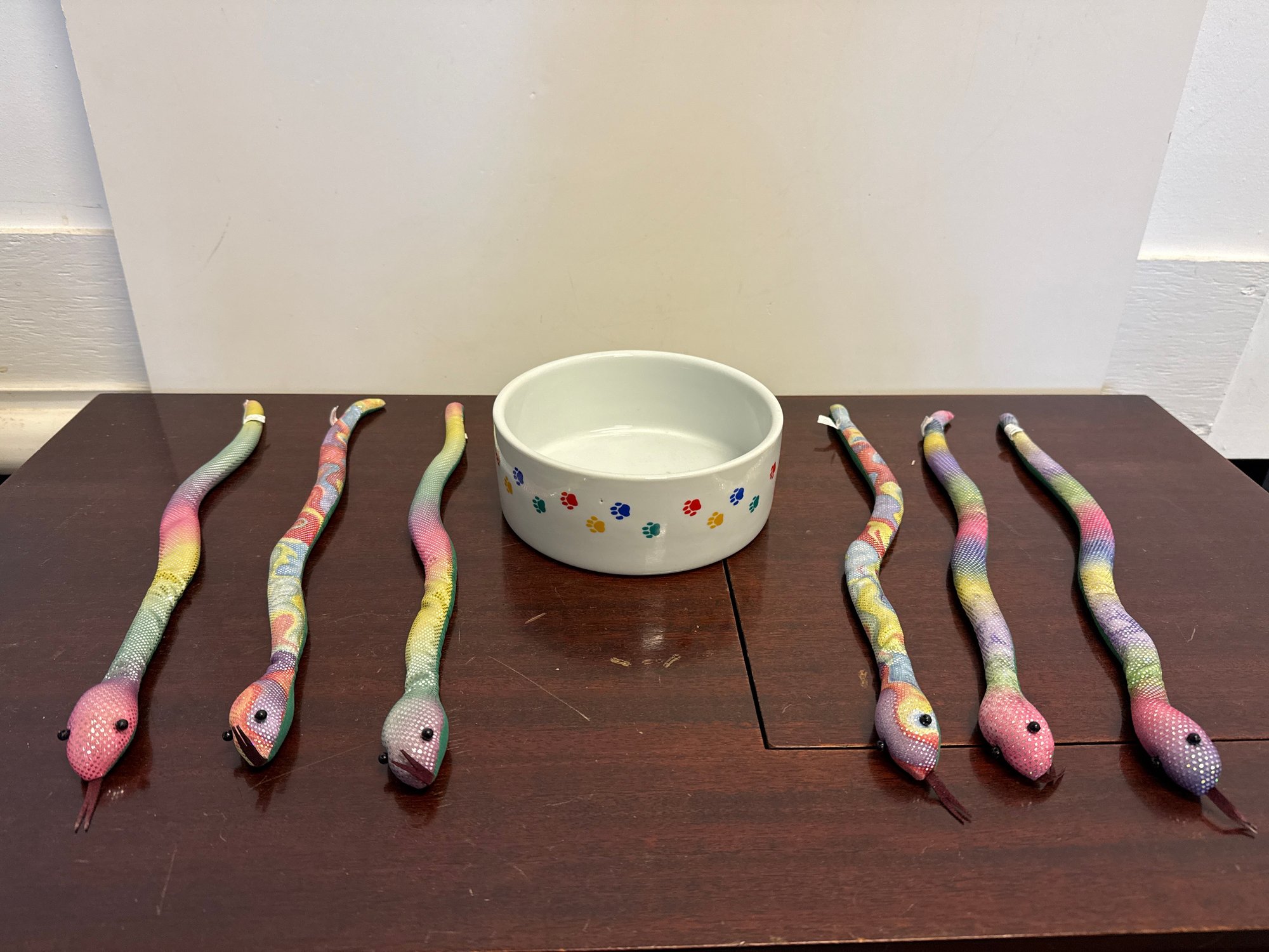 Rainbow Creature Snakes And Ceramic Dog Bowl