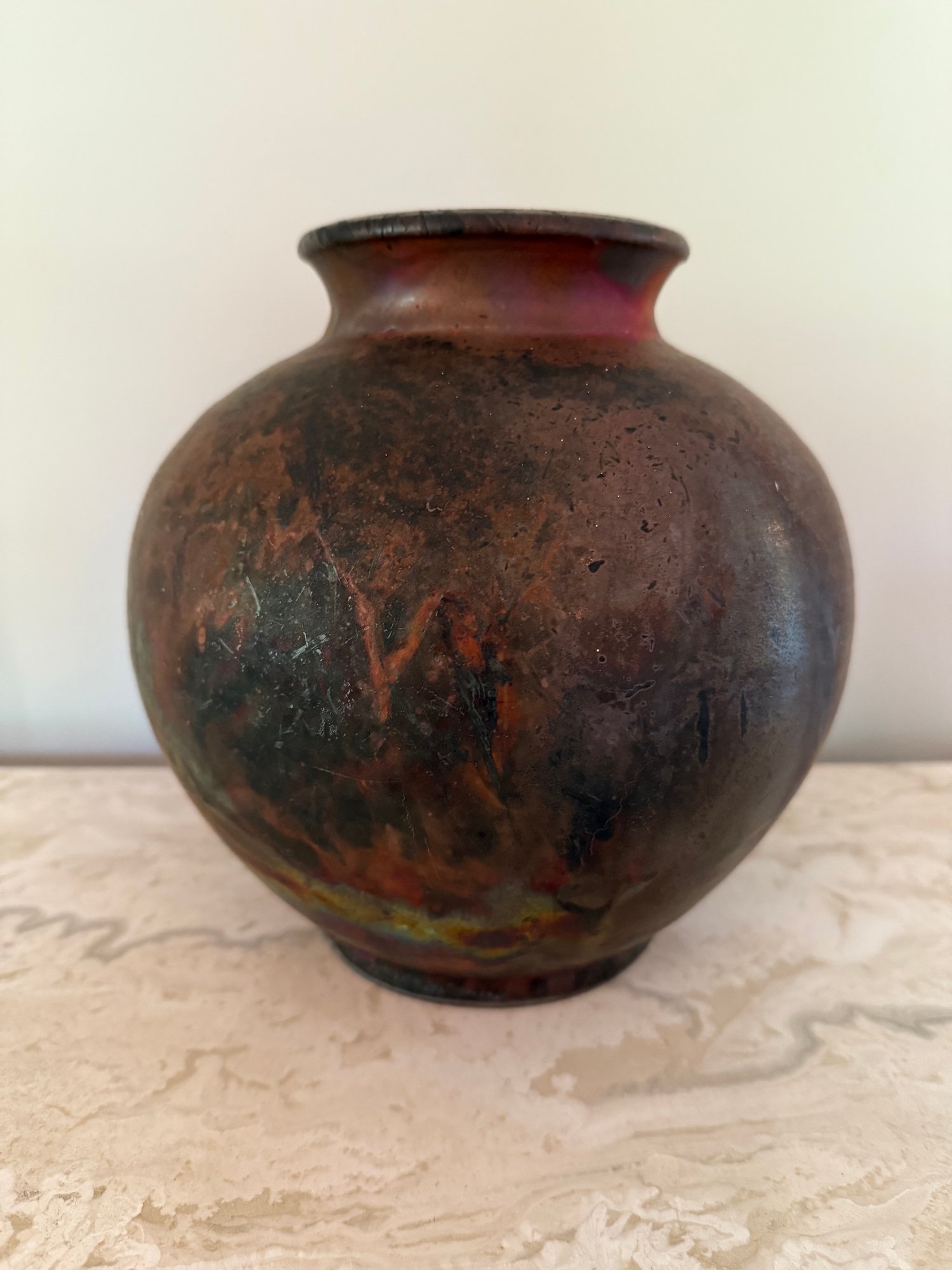 Raku Pottery Round Vase