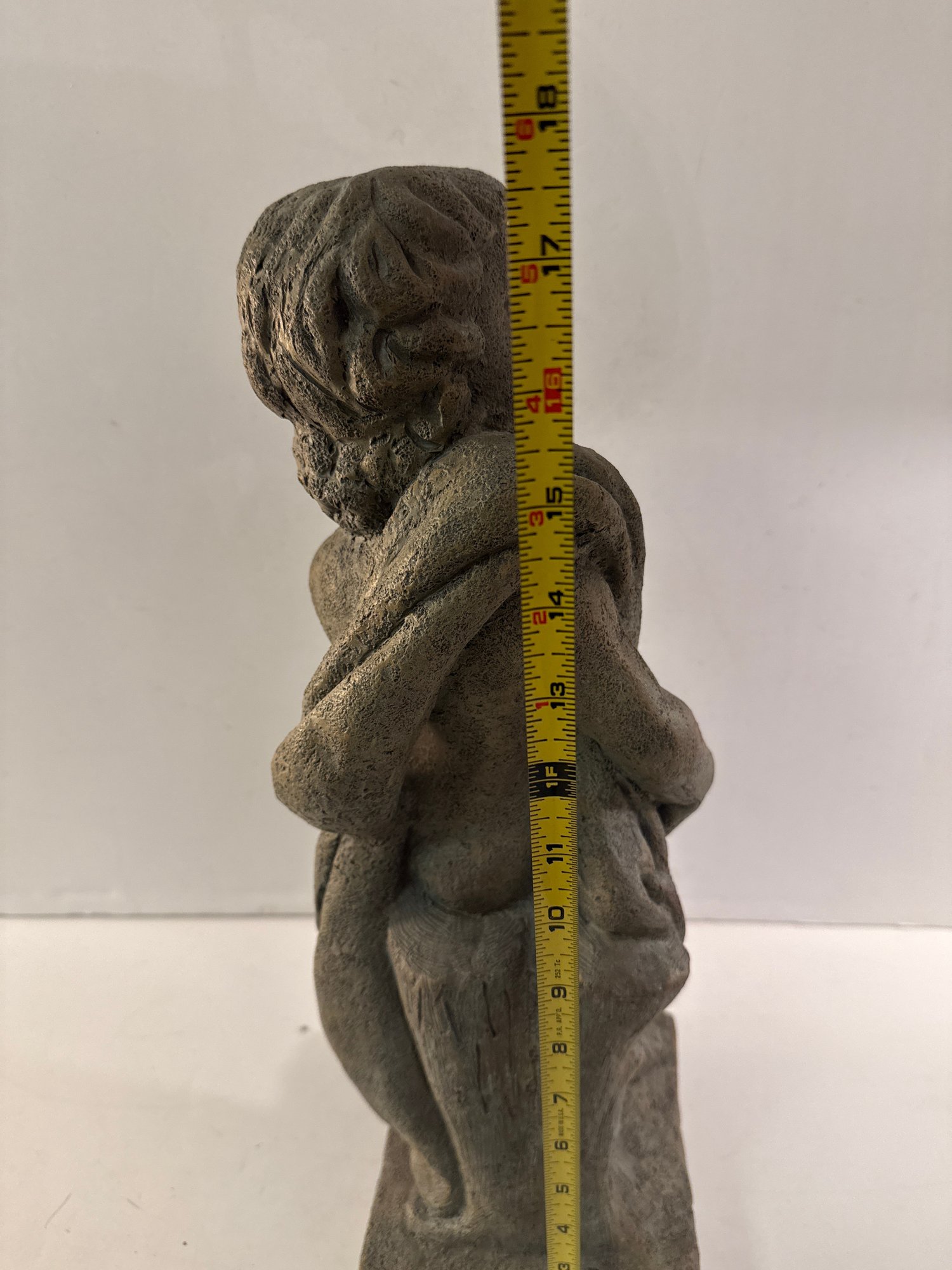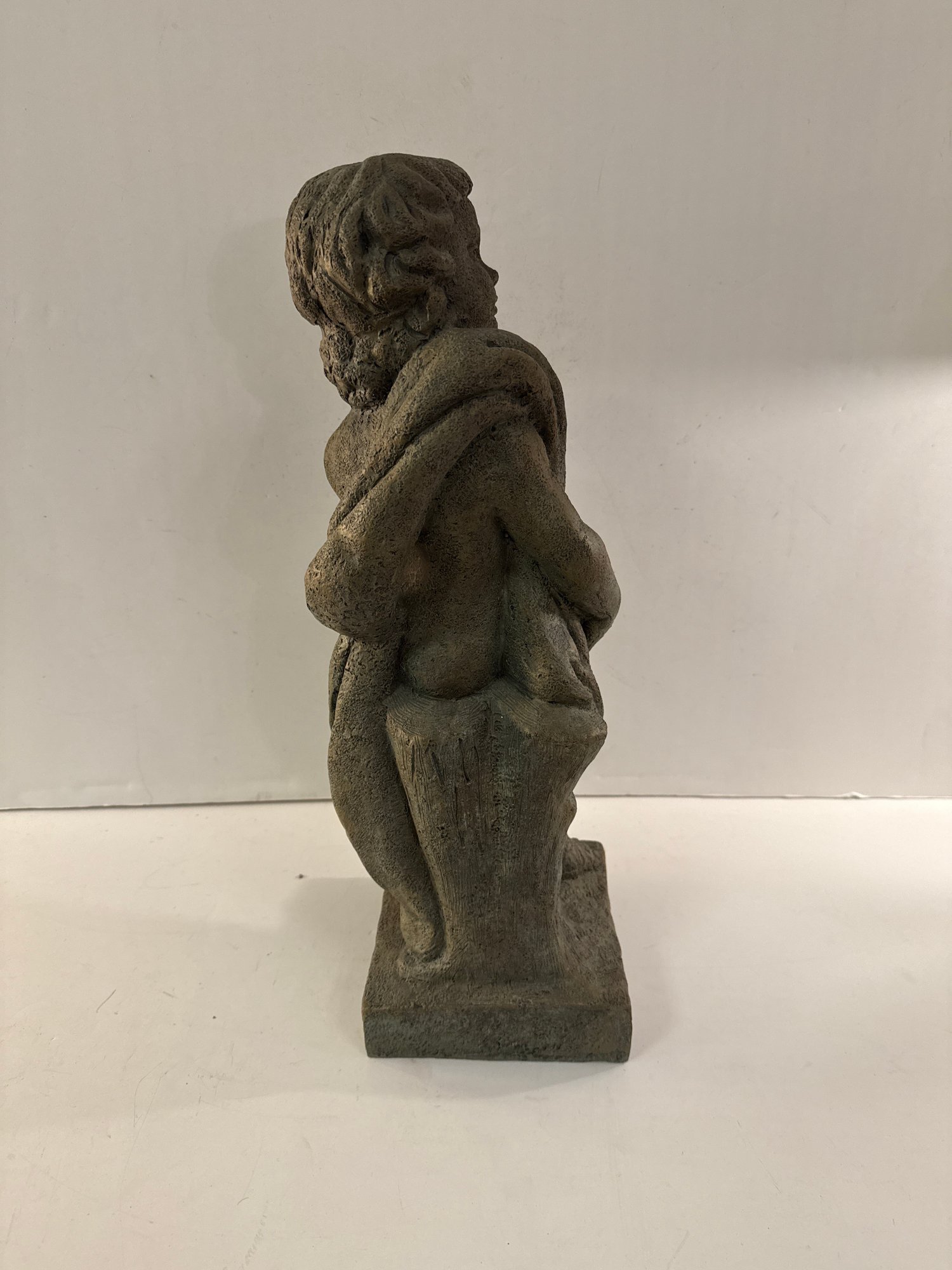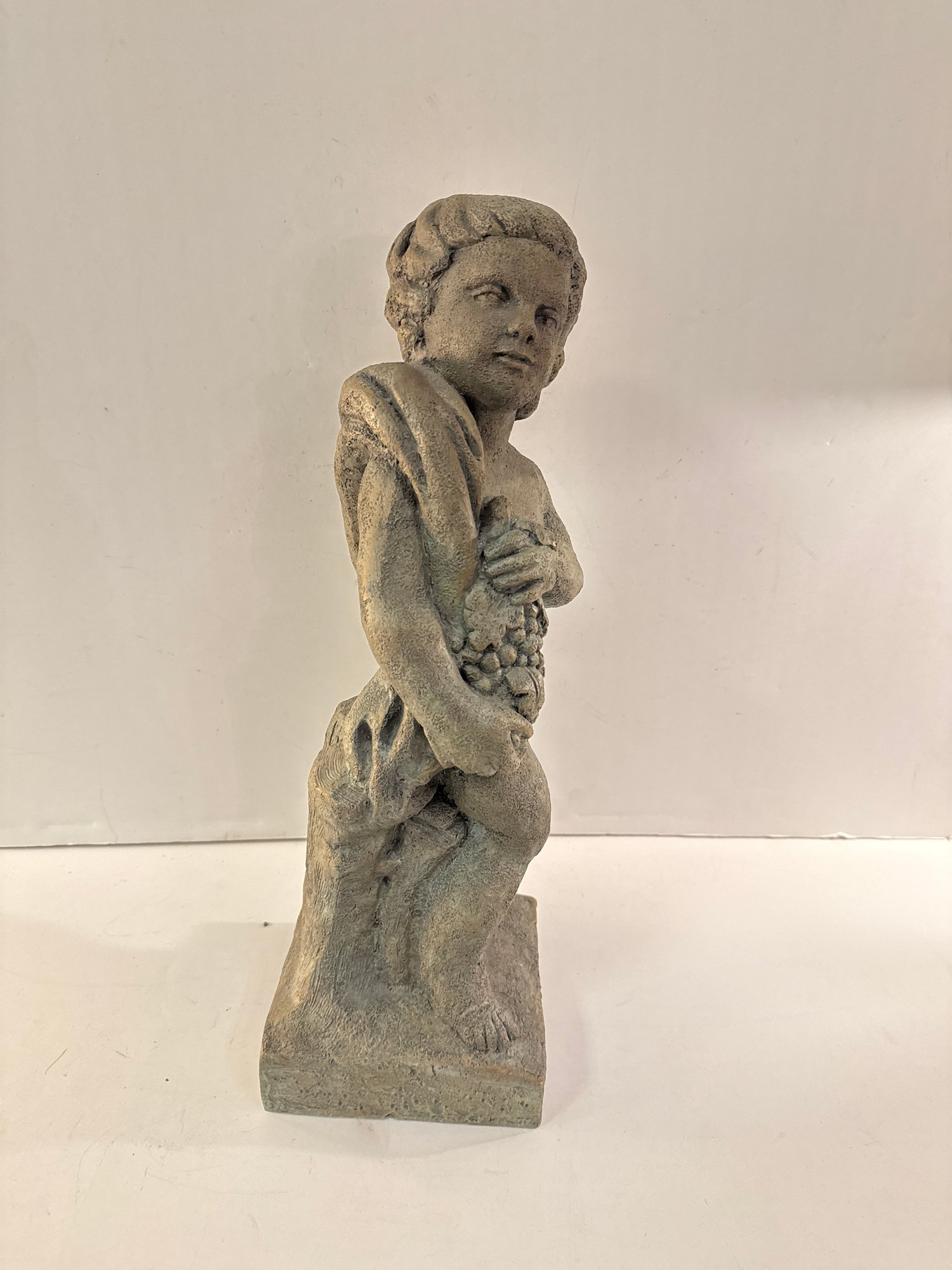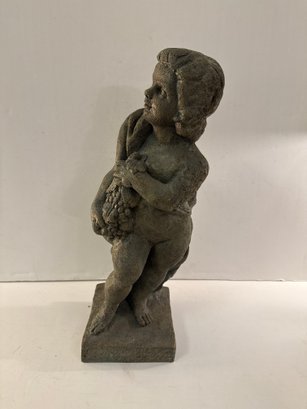 Resin Garden Statue Of A Reclining Putto Holding Grapes.