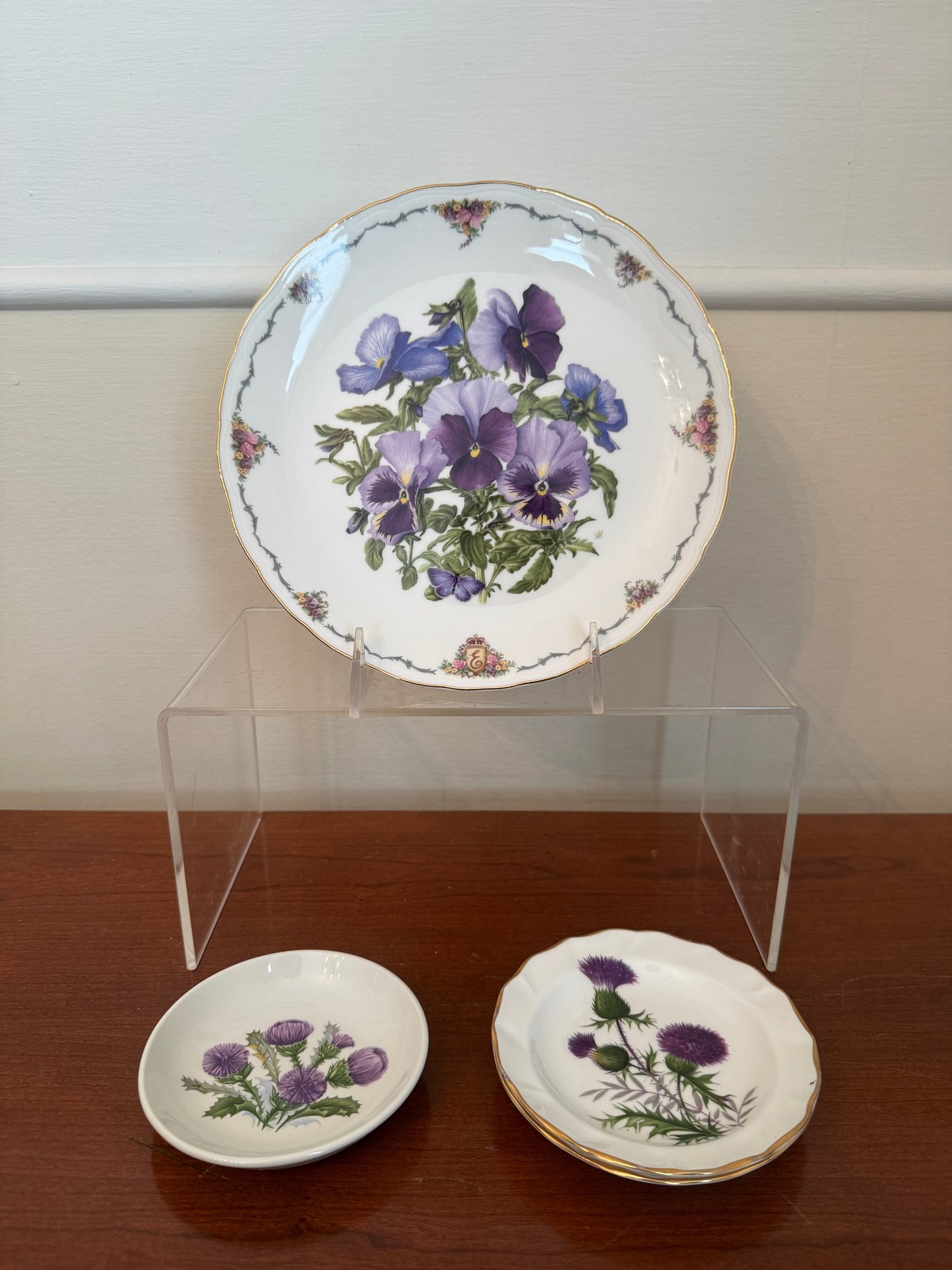 Royal Albert Pansies By Sara Anne Schofield, Glenkinchie County Churchill & Duchess Bone China Trinket Plates