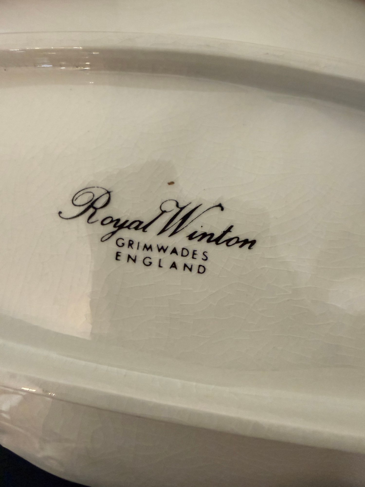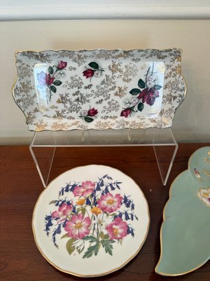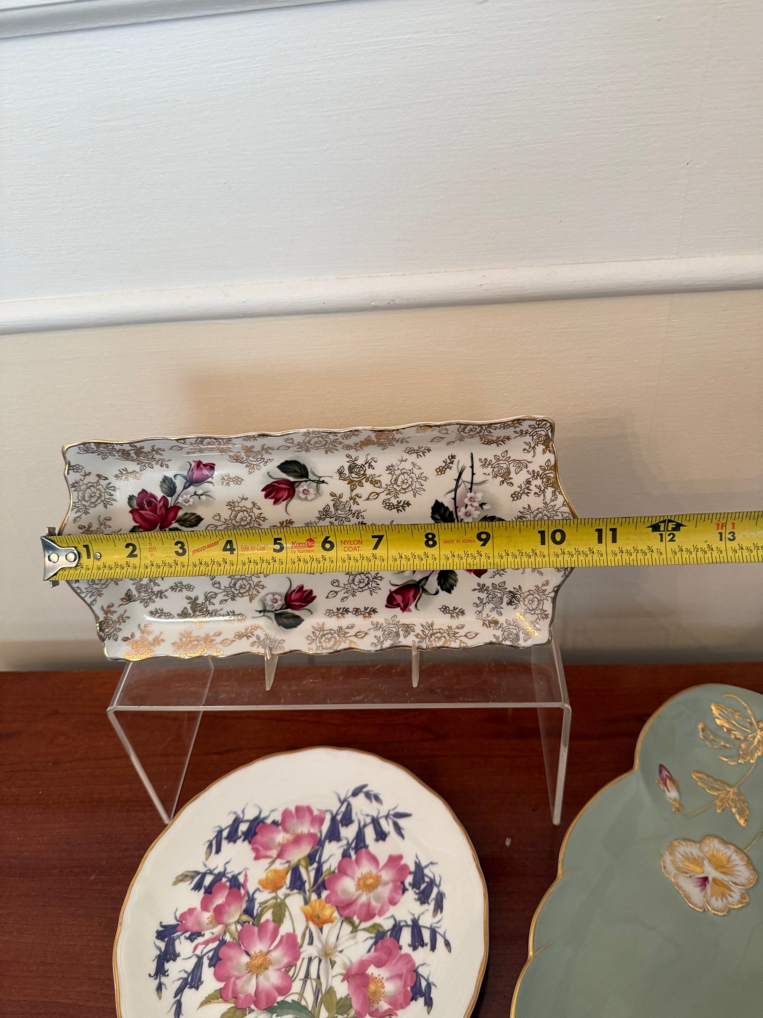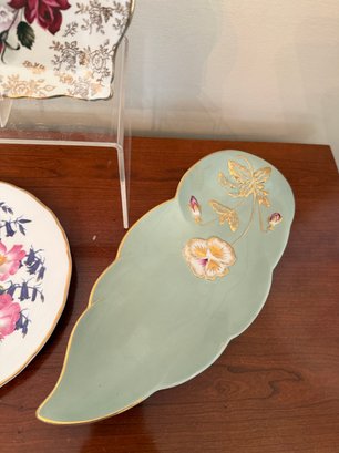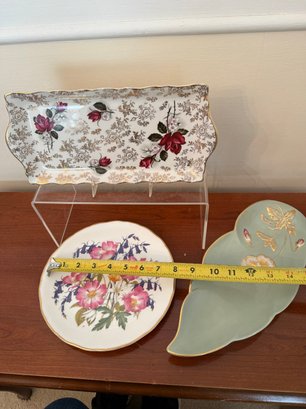 Royal Albert "Woodland Roses" Plate, Royal Winton Leaf Serving Dish, & James Kent "Old Foley" Rectangular Tray