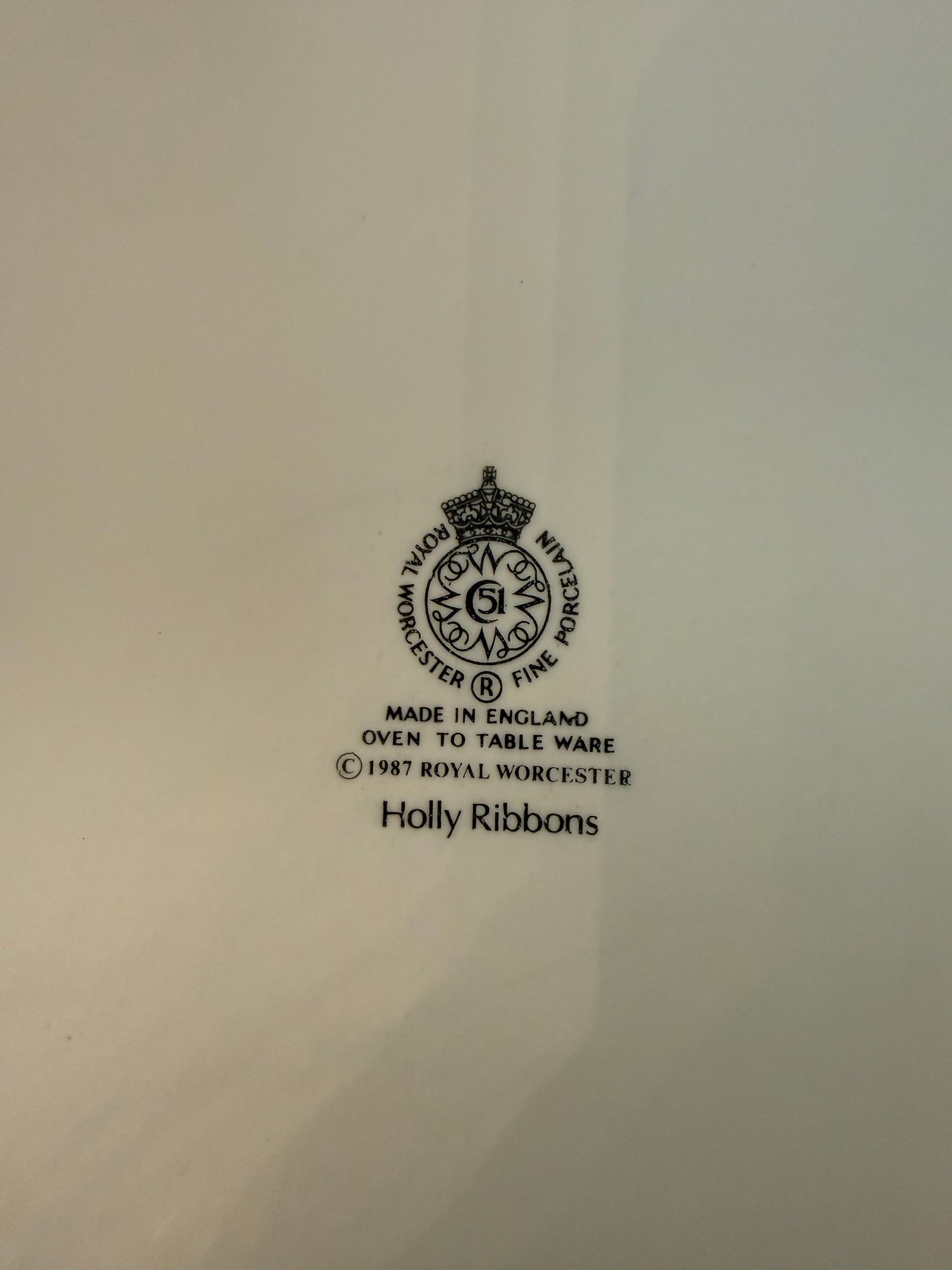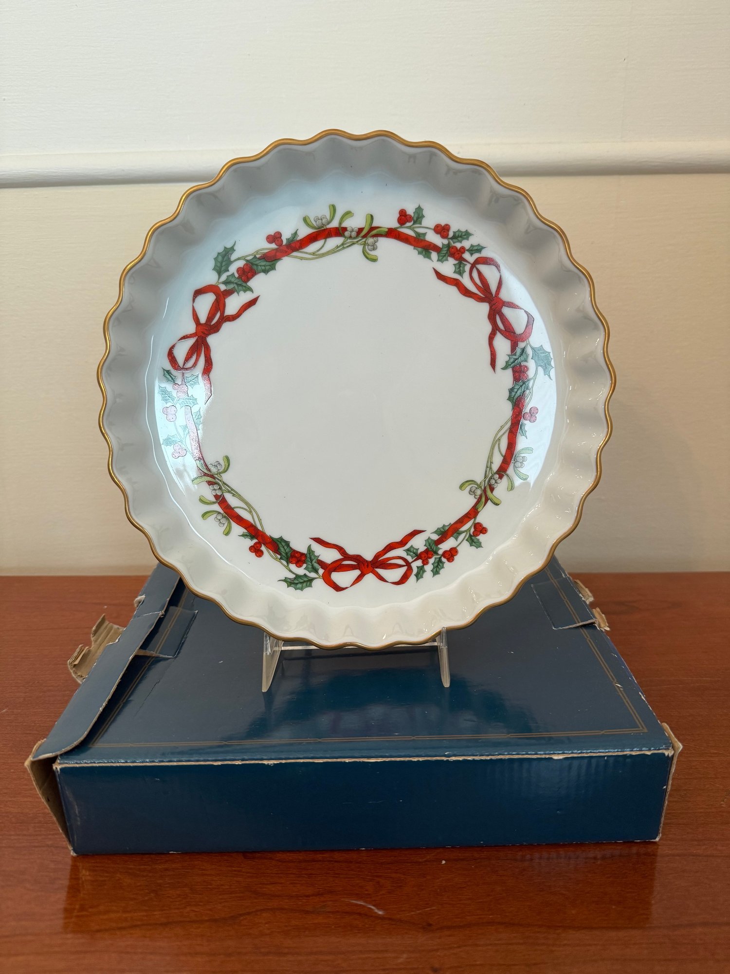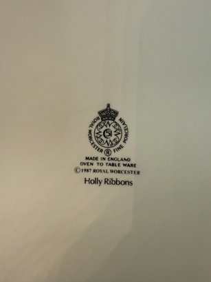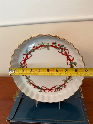 Royal Worcester "Holly Ribbons" Pattern Ceramic Pie Dish With Gold Trim