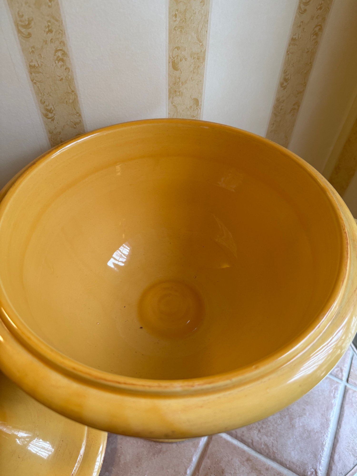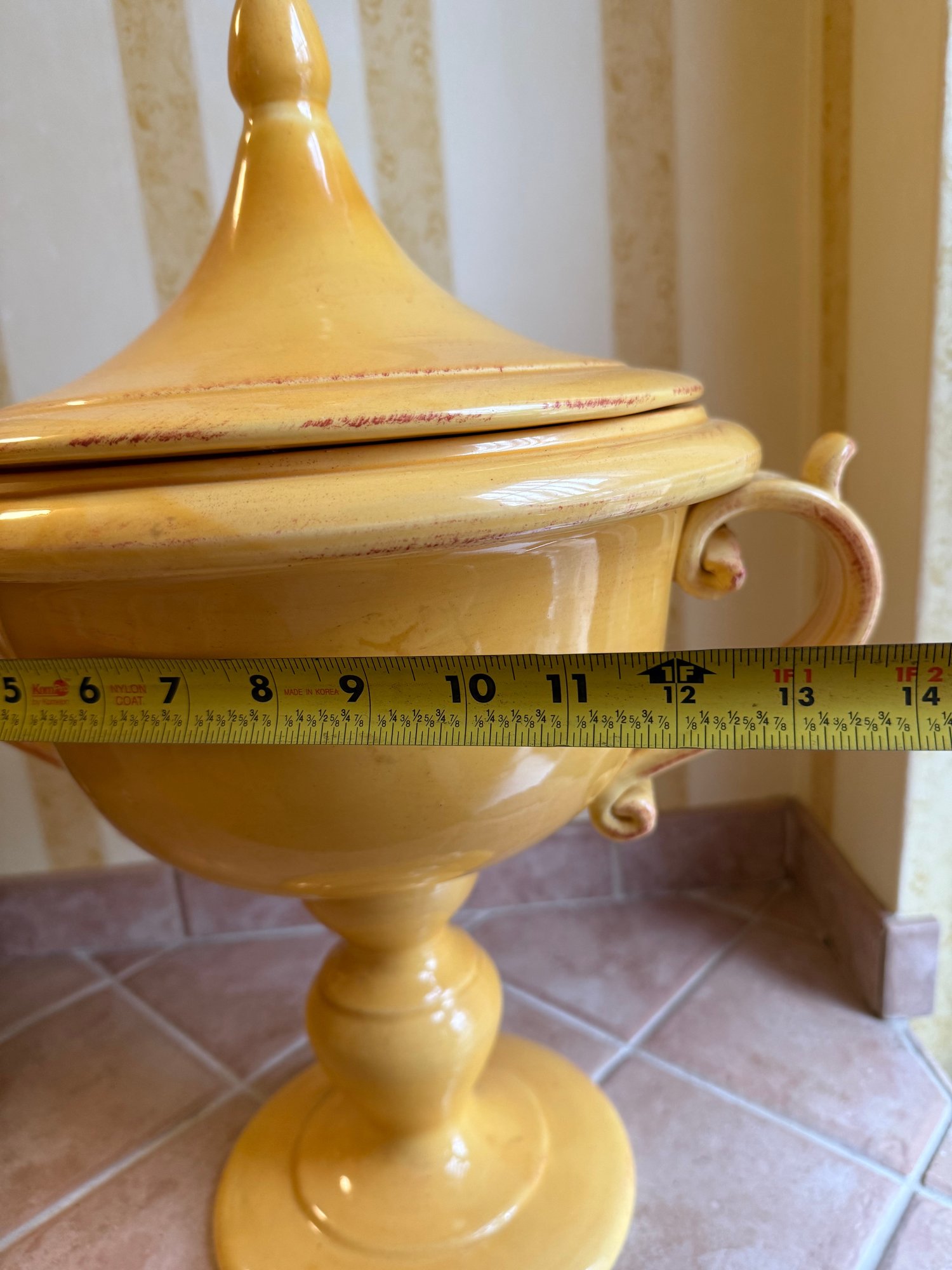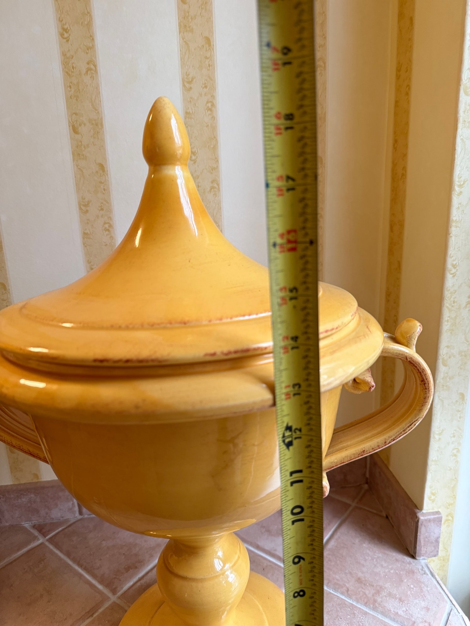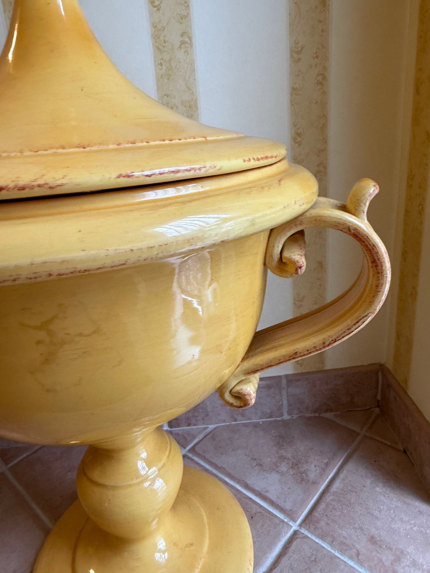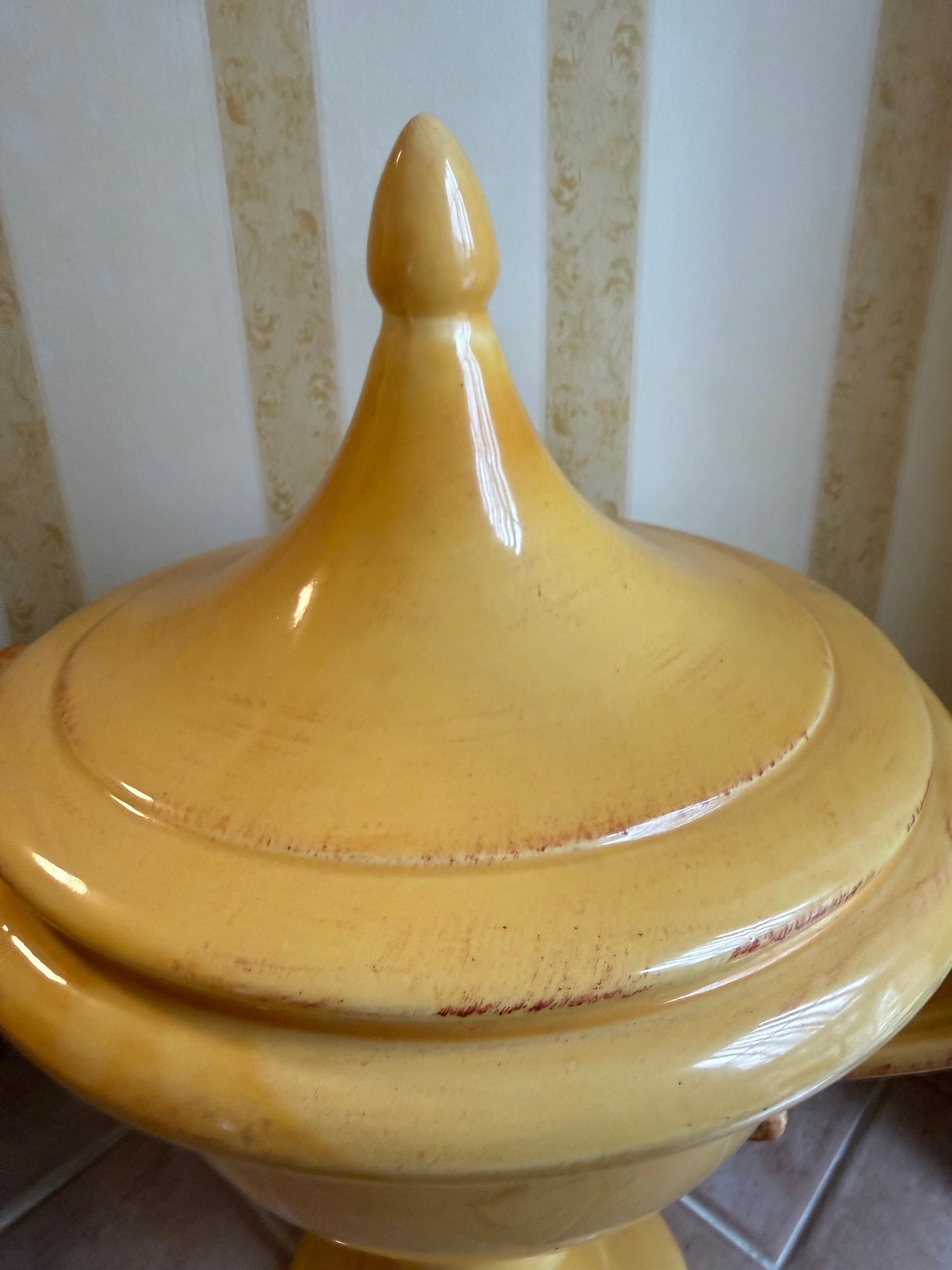 Sara Mid-century Italian Yellow Glazed Ceramic Lidded Urn