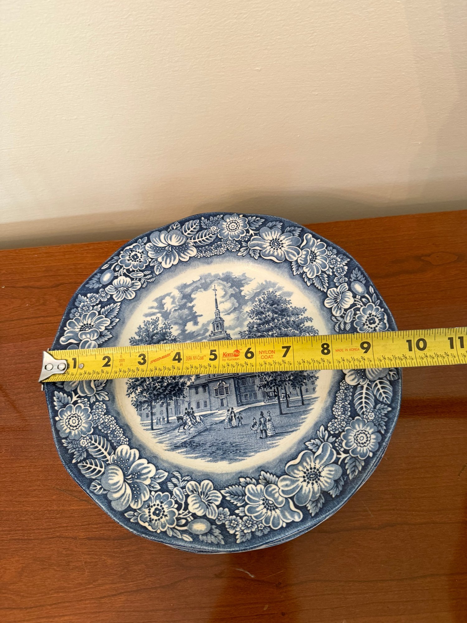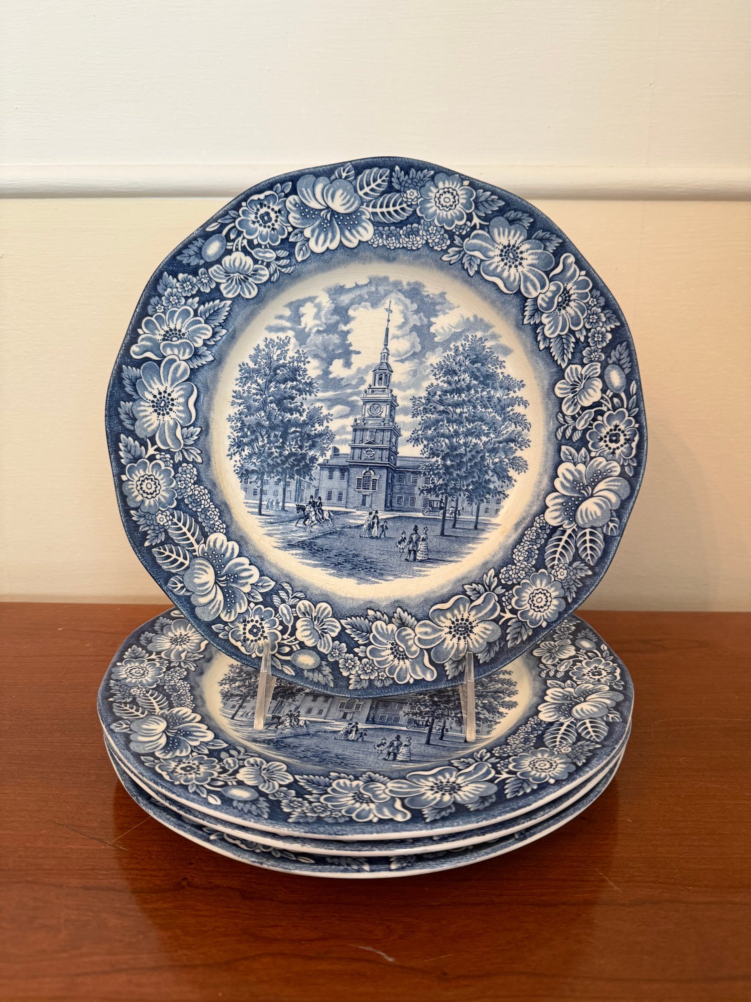 Set Of Four Blue And White Staffordshire Liberty Blue Transferware Plates.