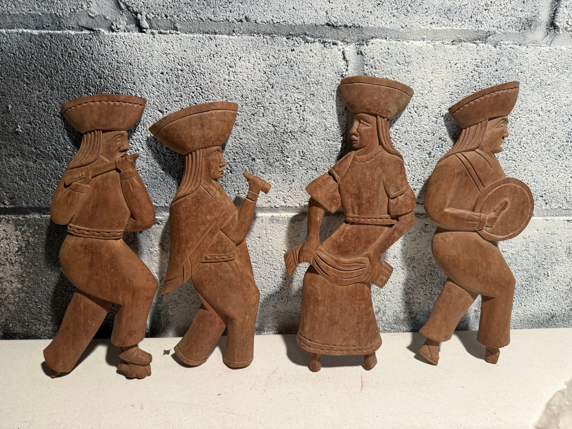 Set Of Four Carved Wooden Ecuadorian Folk Art Figures