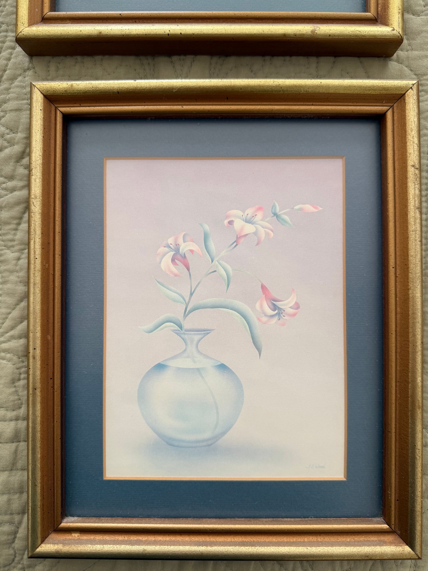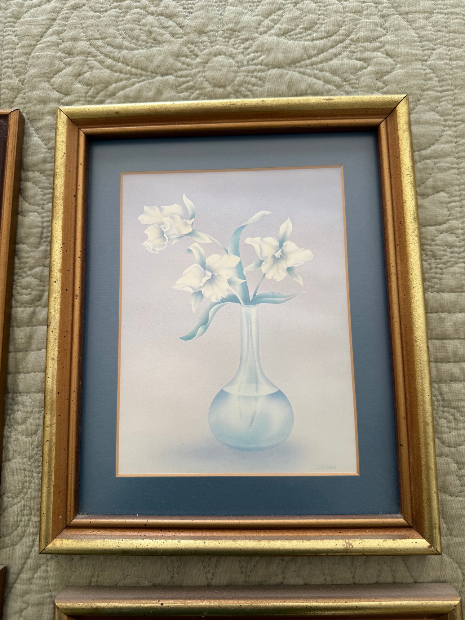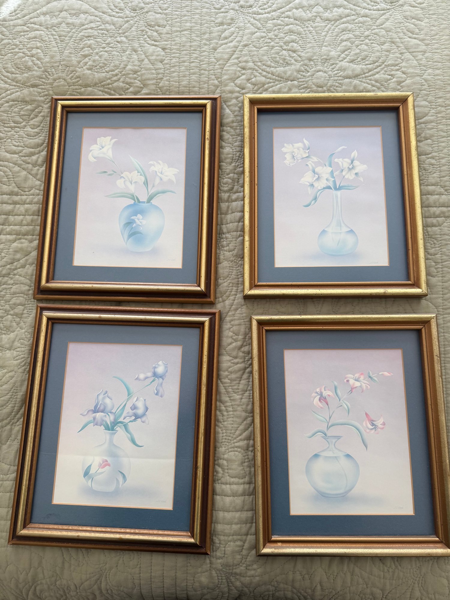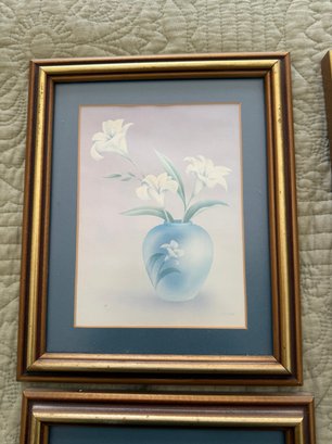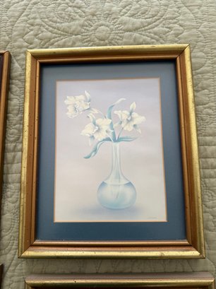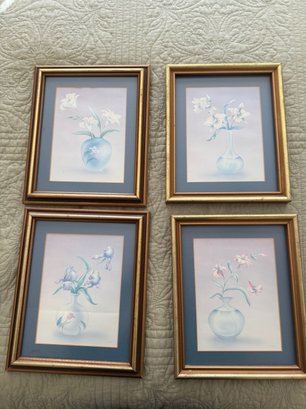 Set Of Four Framed Decorative Floral Prints With Pastel Colors