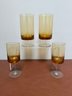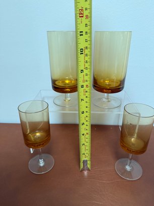 Set Of Four Vintage Amber Krosno Glass Goblets And Wine Glasses