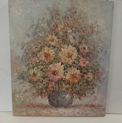 Signed Impressionistic Floral Still Life Oil Painting With Thick Impasto Brushstrokes