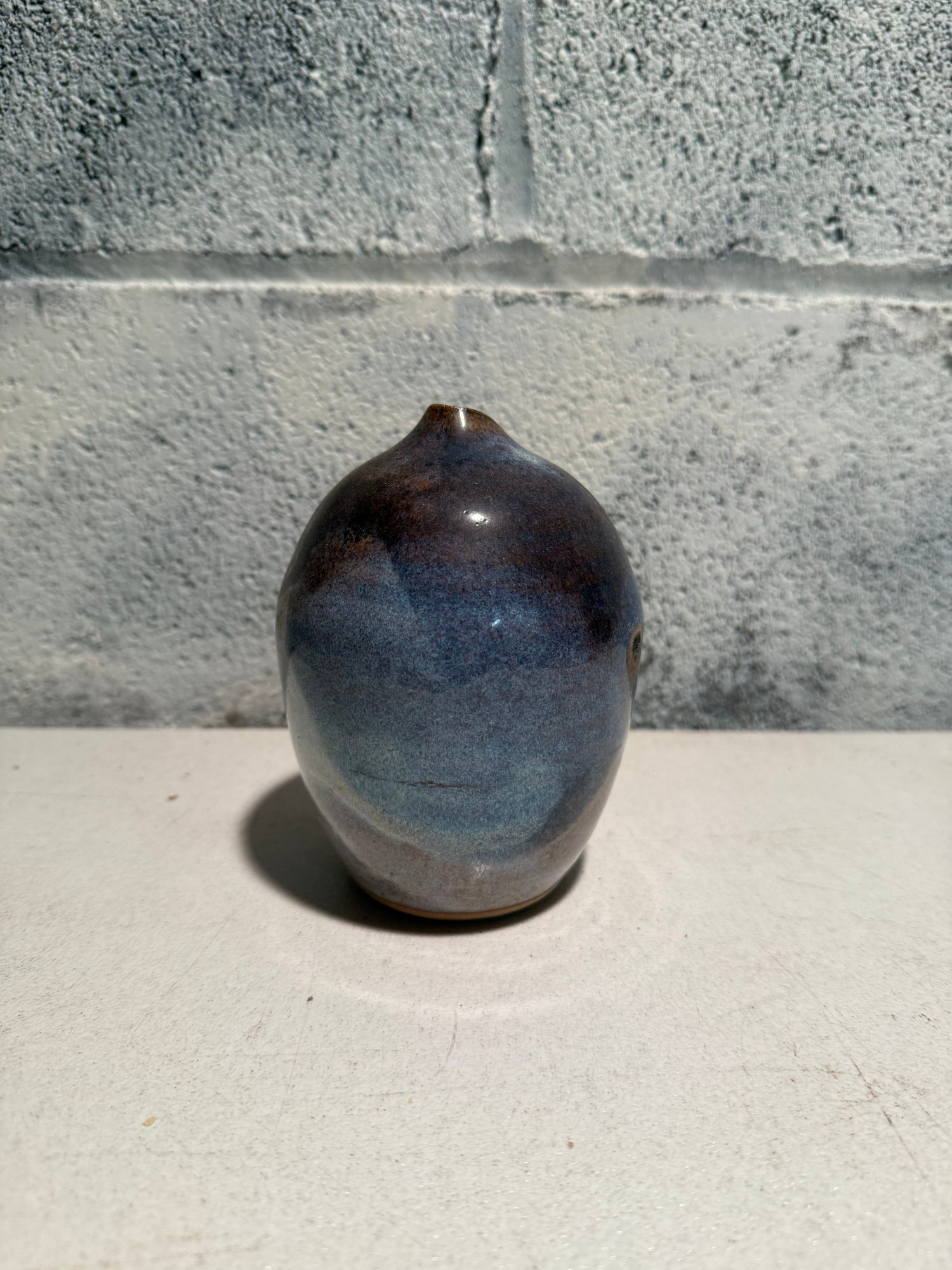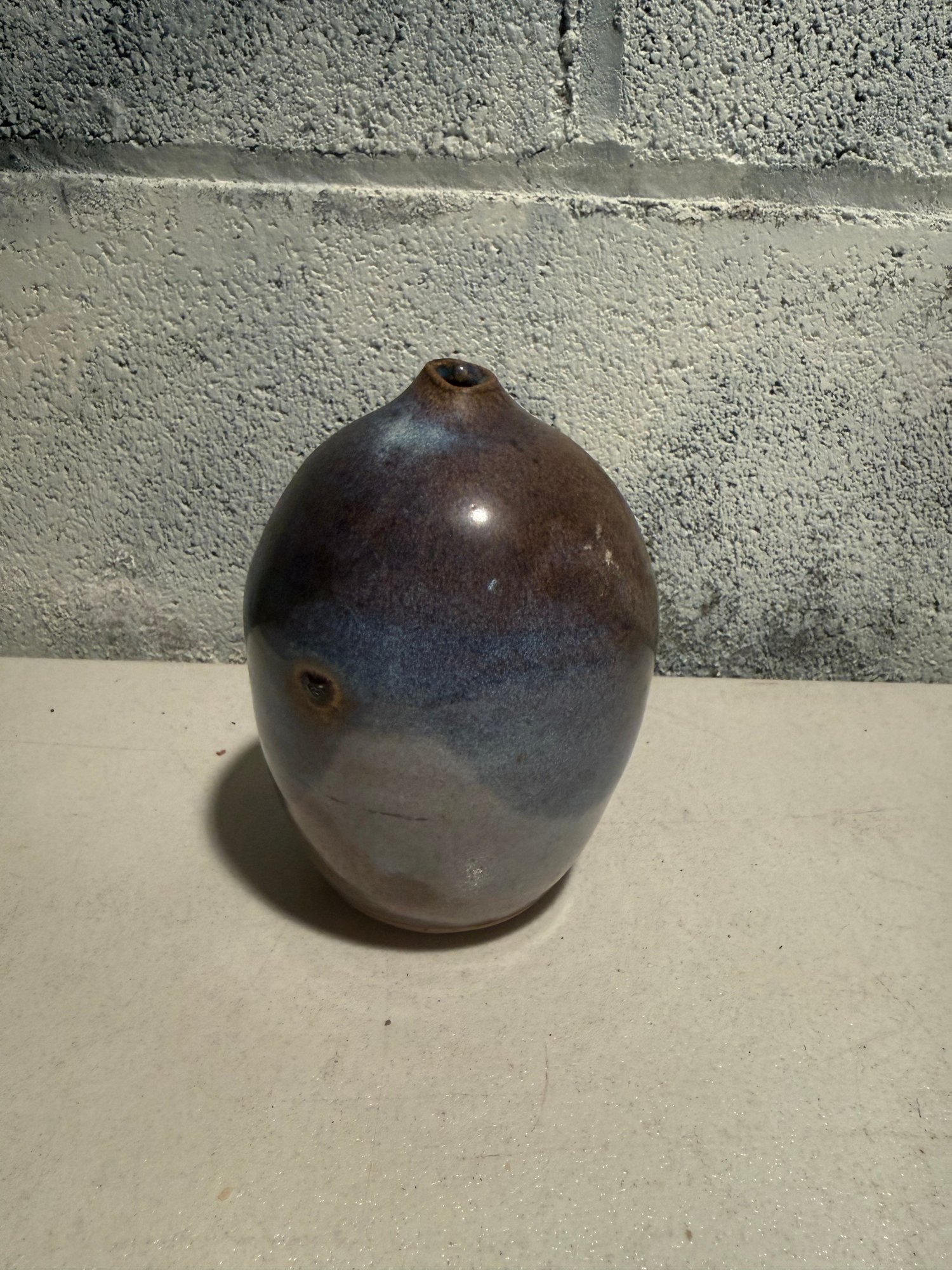 Signed Small, Teardrop-shaped Ceramic Glazed Vase