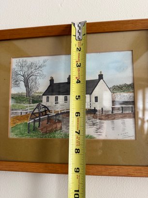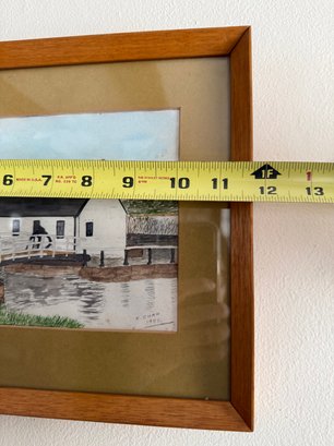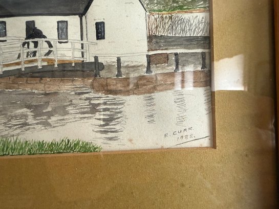 Signed Watercolor Painting Of A Canal Lock And Building By R. Curr