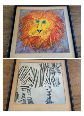 Signed Zebra And Lion Art