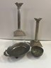 Silver Candle Stick Holders, And 2 A Silver Plated Serving Tray Middle Eastern