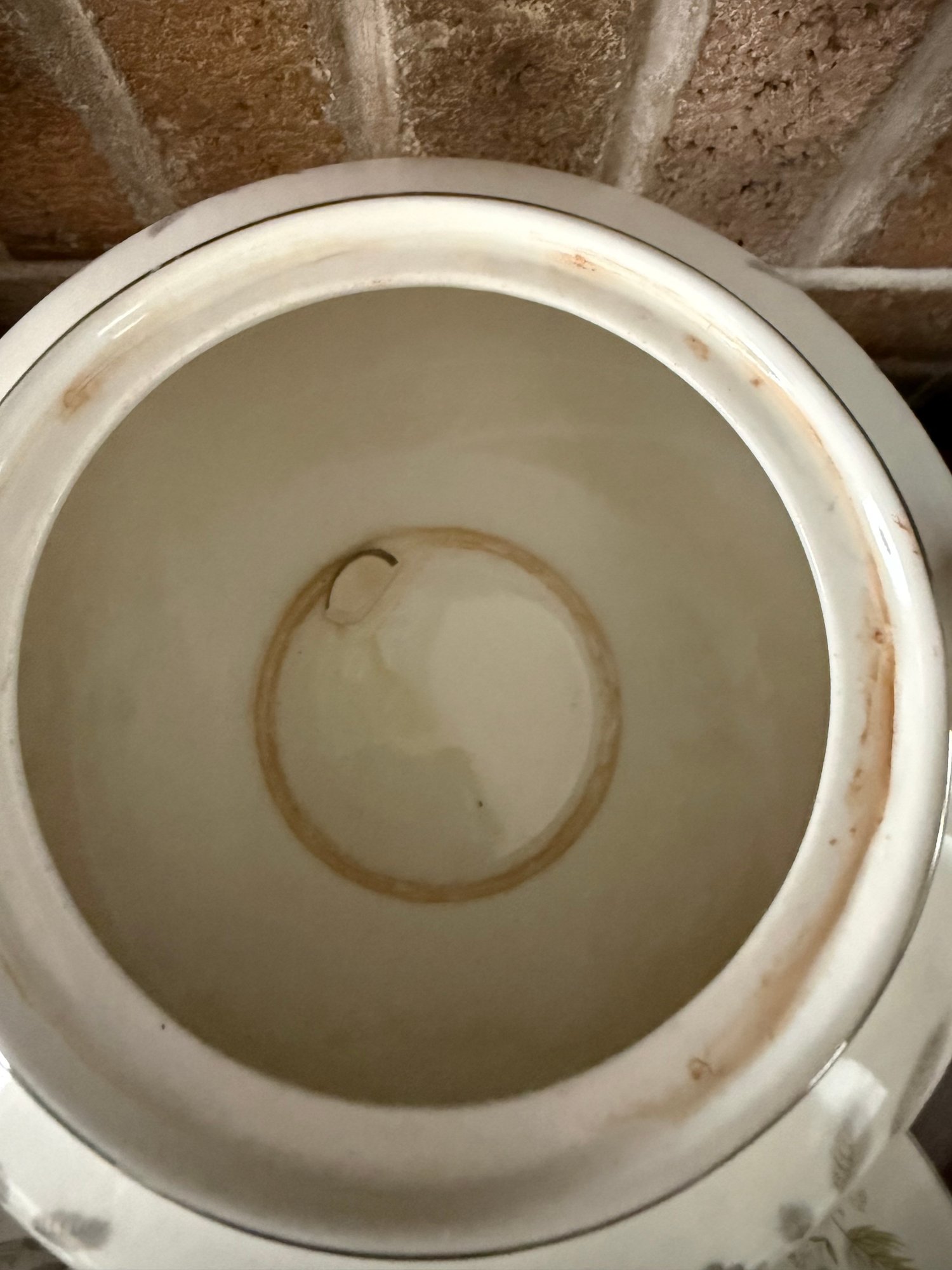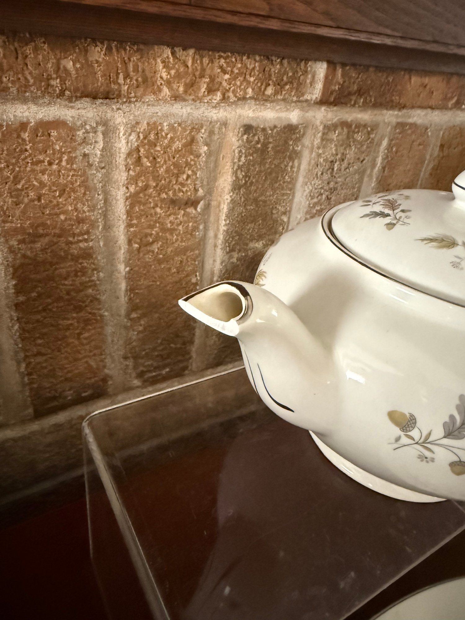 Tea pot has a chip. The pieces is in the teapot ready to be glued back on.