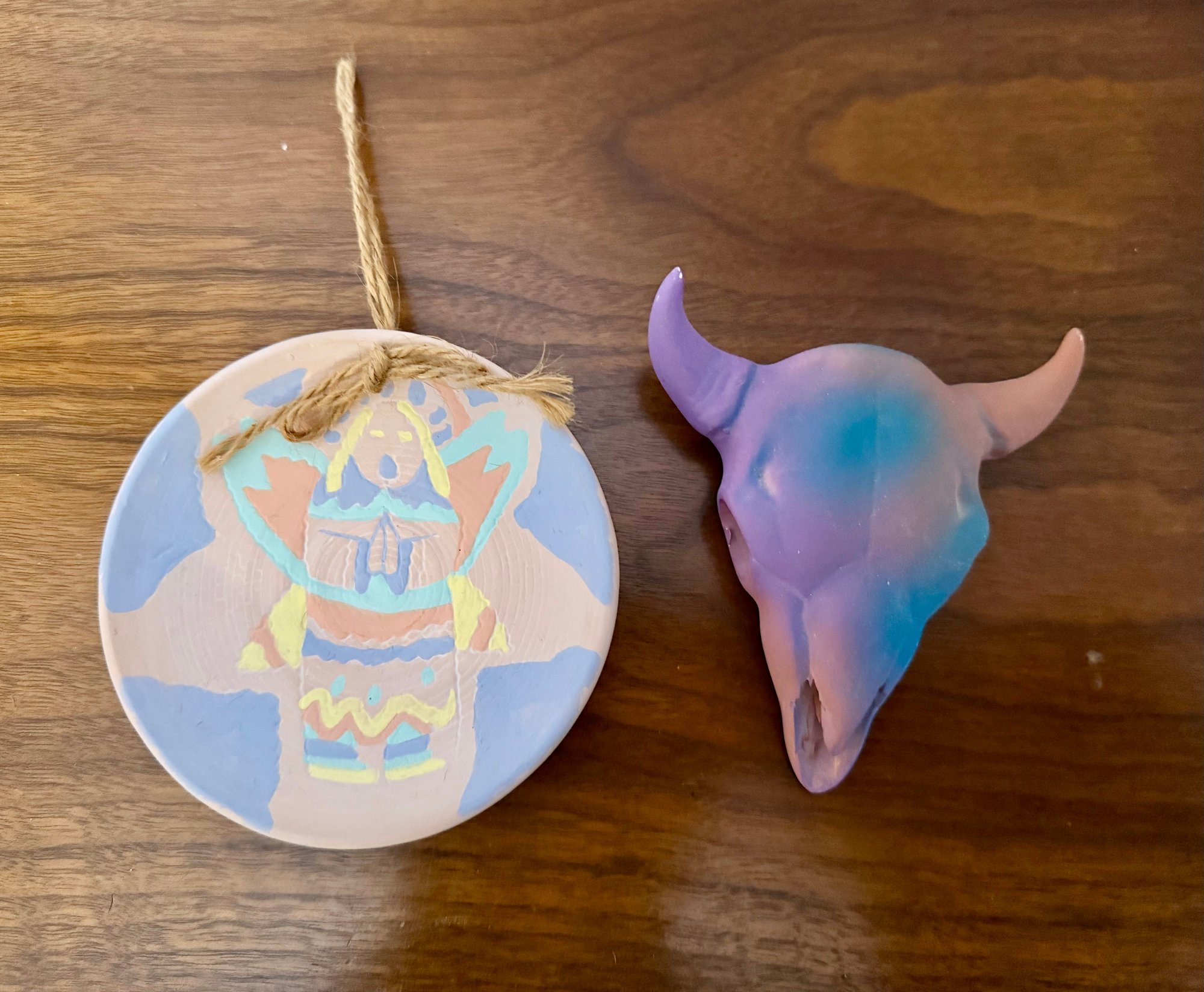 Southwest Native American Clay Pottery Ornament, & Bohemian Bull Skull