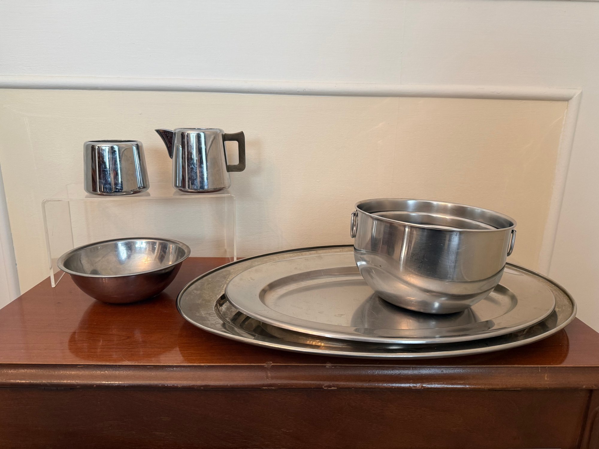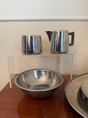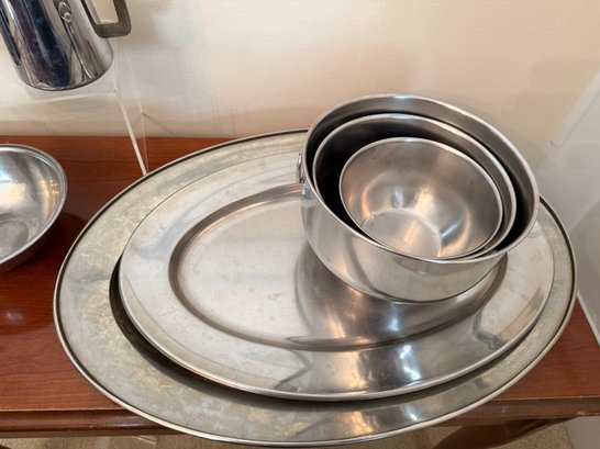 Stainless Steel Trays, Creamer/sugar, And Nesting Mixing Bowls