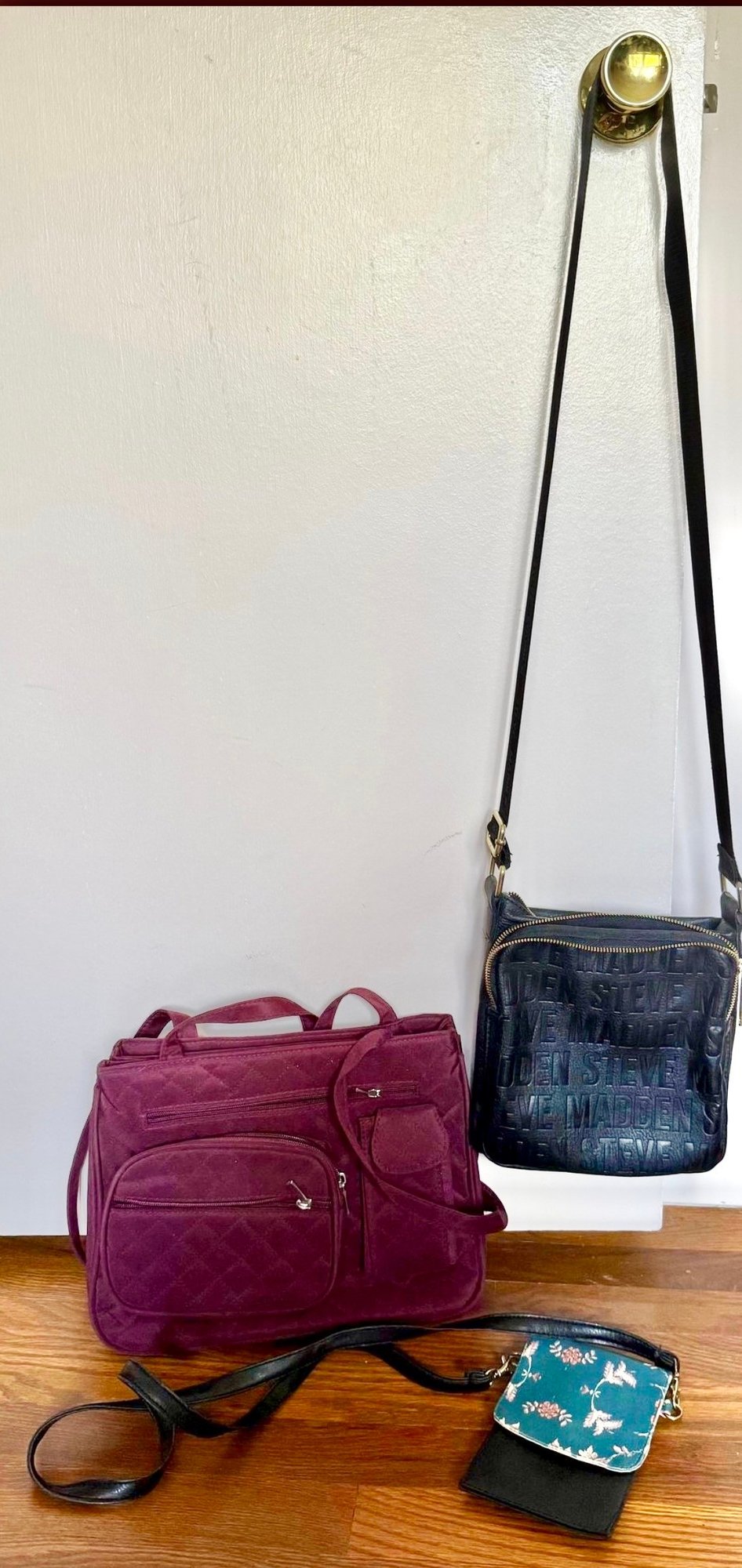 Steve Madden Crossbody Bag, Quilt Maroon Bag And Small Cellphone Crossbody Bag