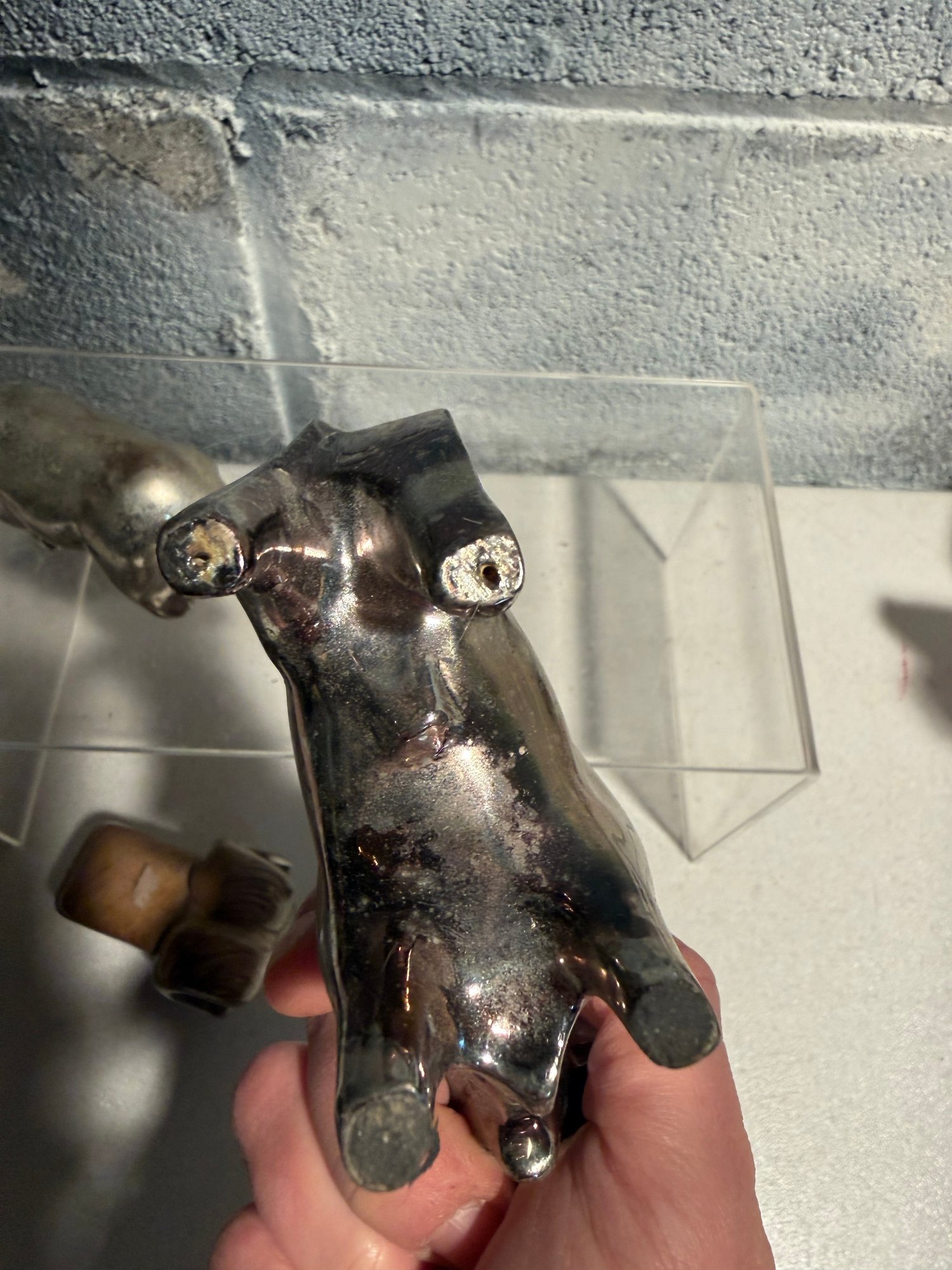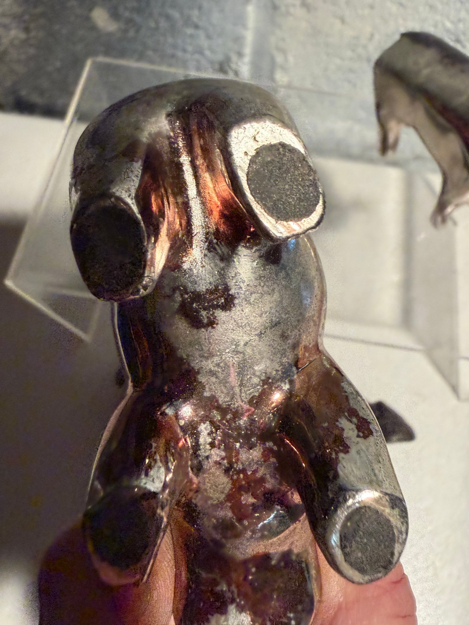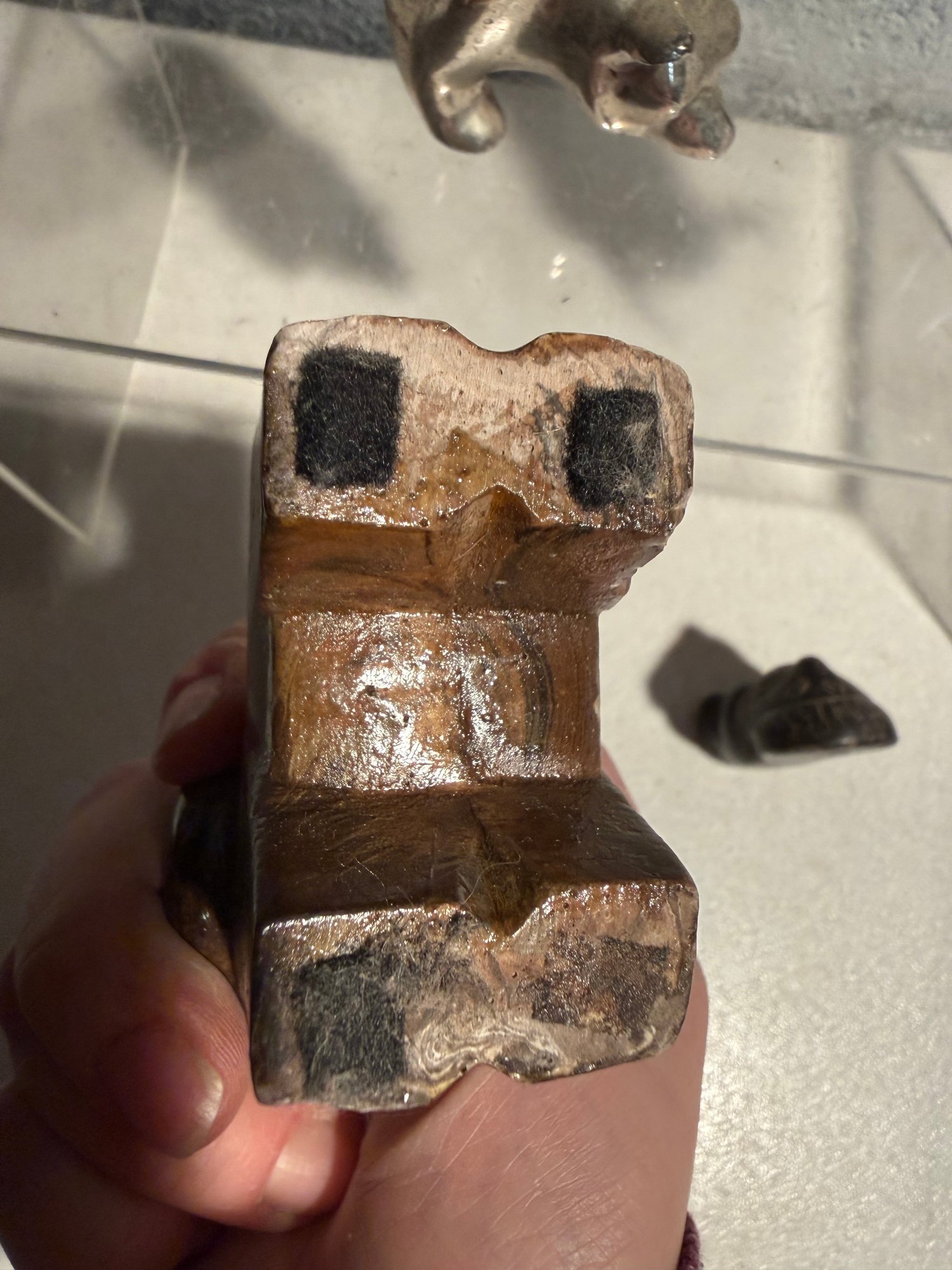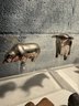 Stylized Chrome Bull/bear Figurine, Tano Stone Zem Figure & Wood Glazed Ram