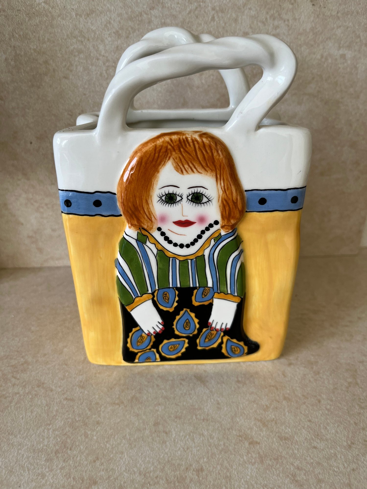 Susan Paley Ceramic Purse Vase By Ganz Featuring A Stylized Woman