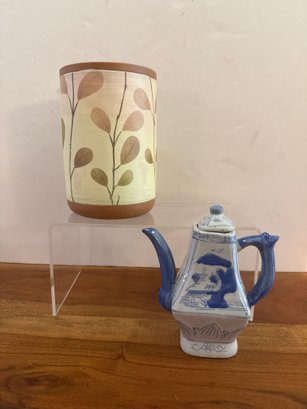 Terracotta Planter And Twos Company Blue/white Tea Pot