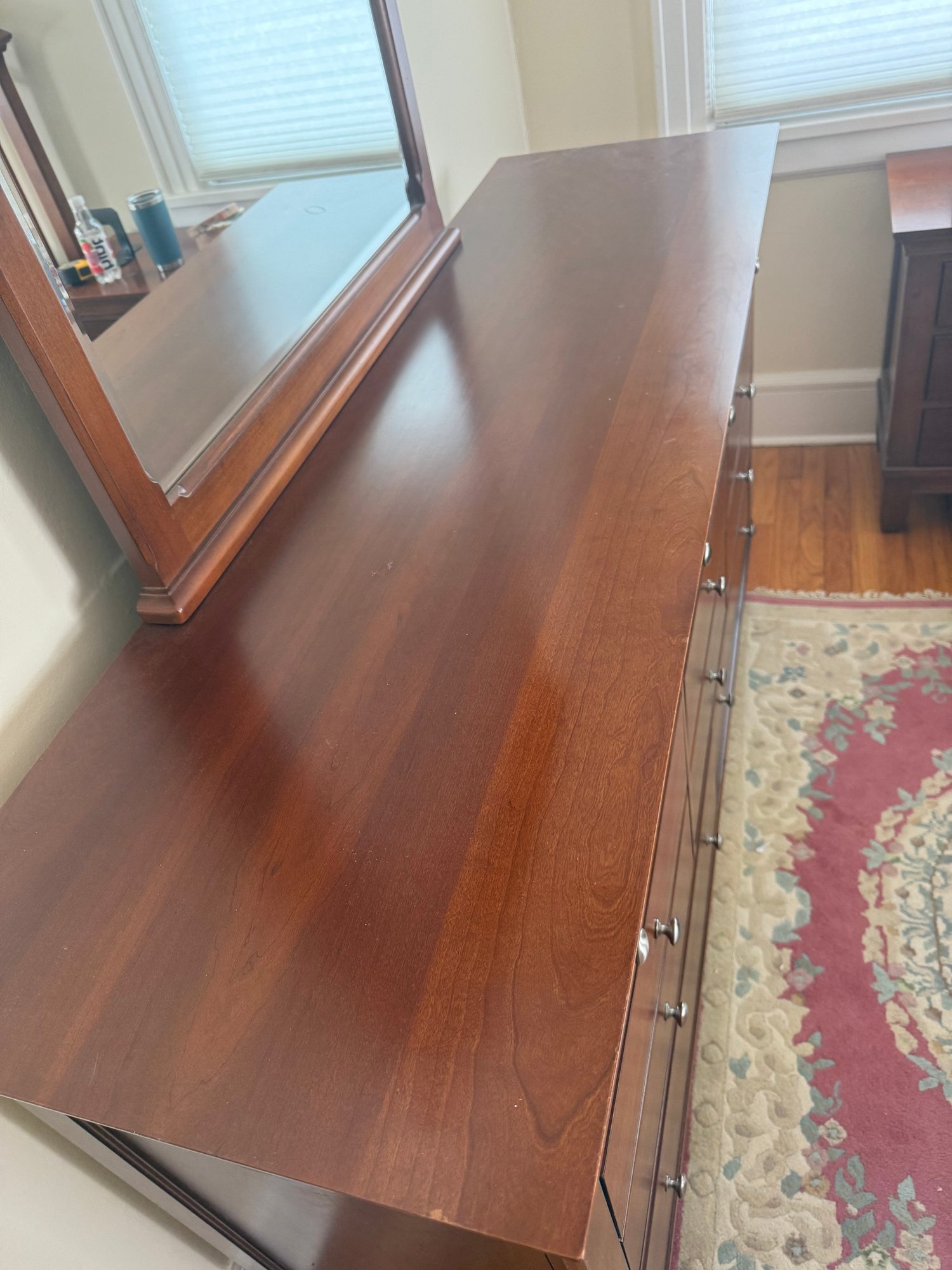 Thomasville Cherry Wood 10 Draw Dresser And Mirror