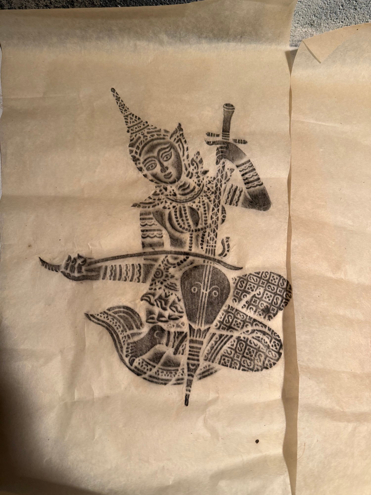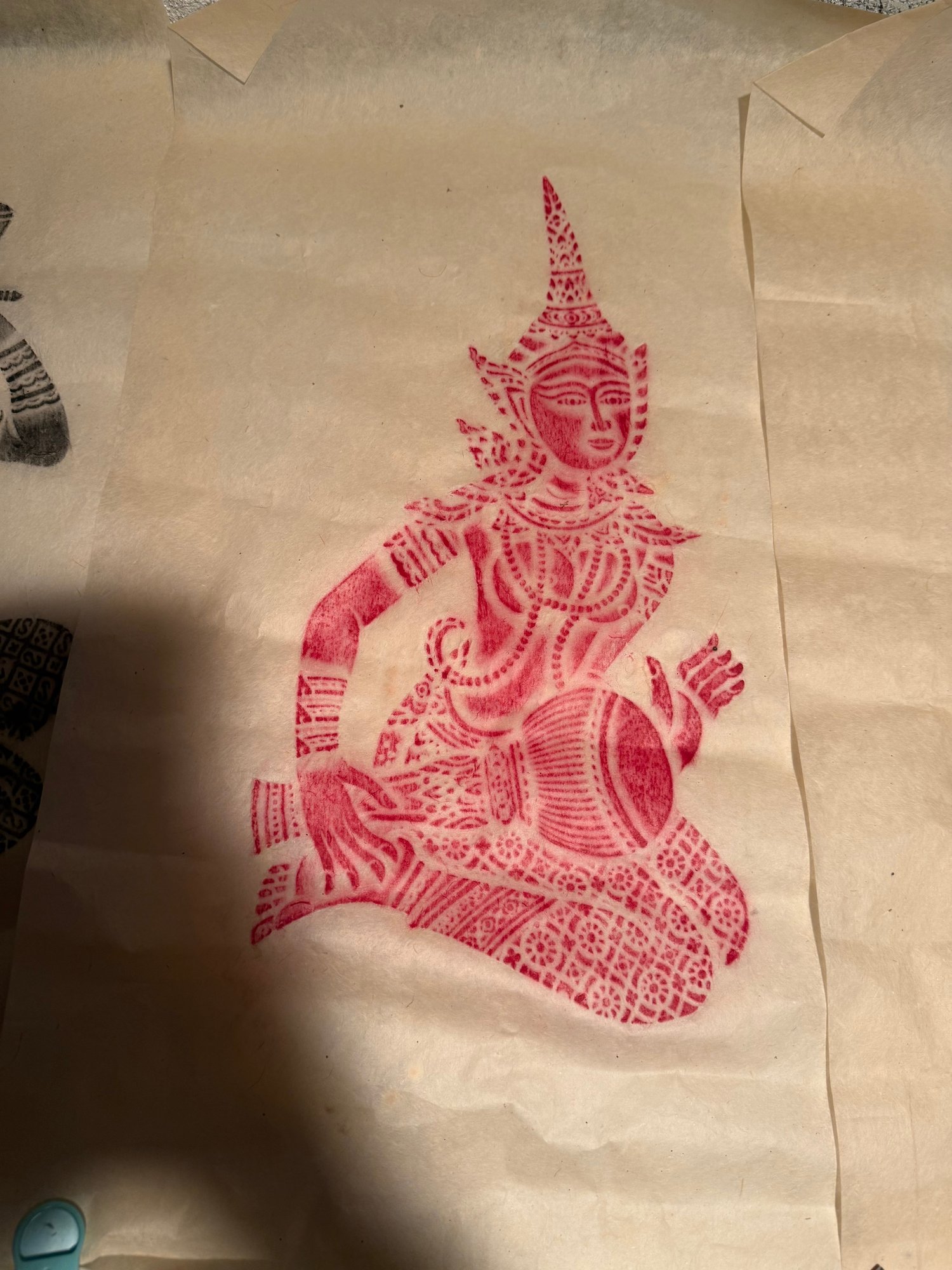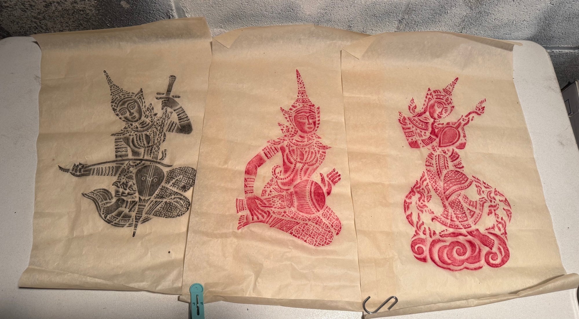 Three Vintage Thai Temple Rubbings On Rice Paper 2 Red. 1 Black