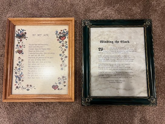 Two Inspirational Framed Prints: To My Son, And Winding The Clock