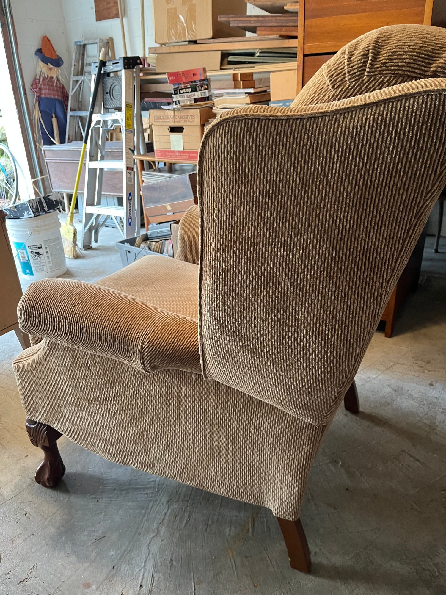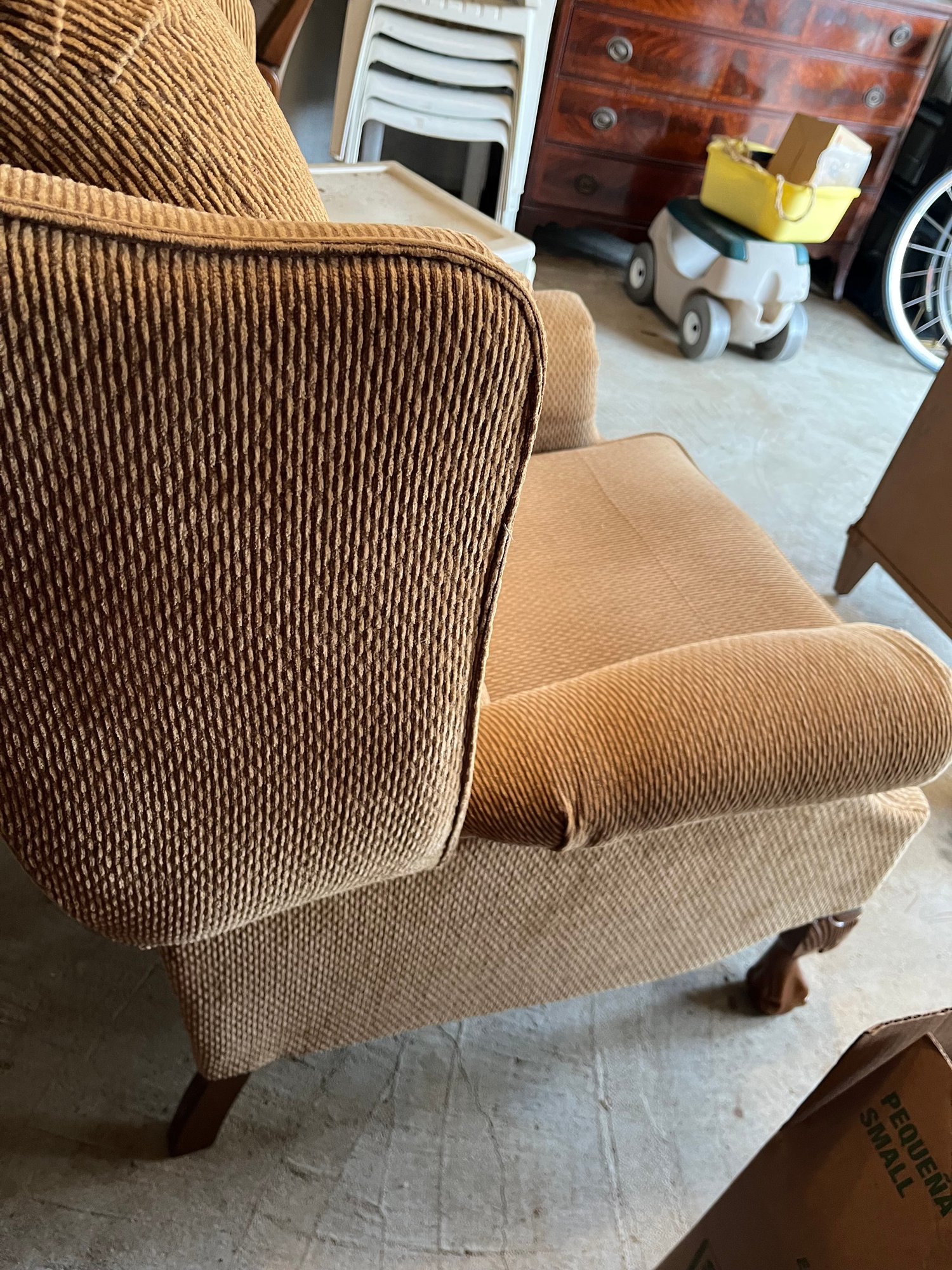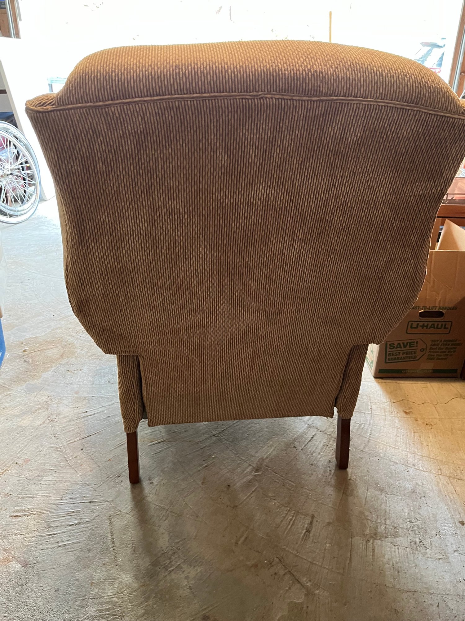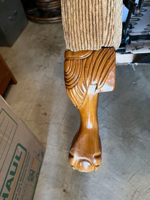 Upholstered Recliner Chair With Carved Wooden Feet.