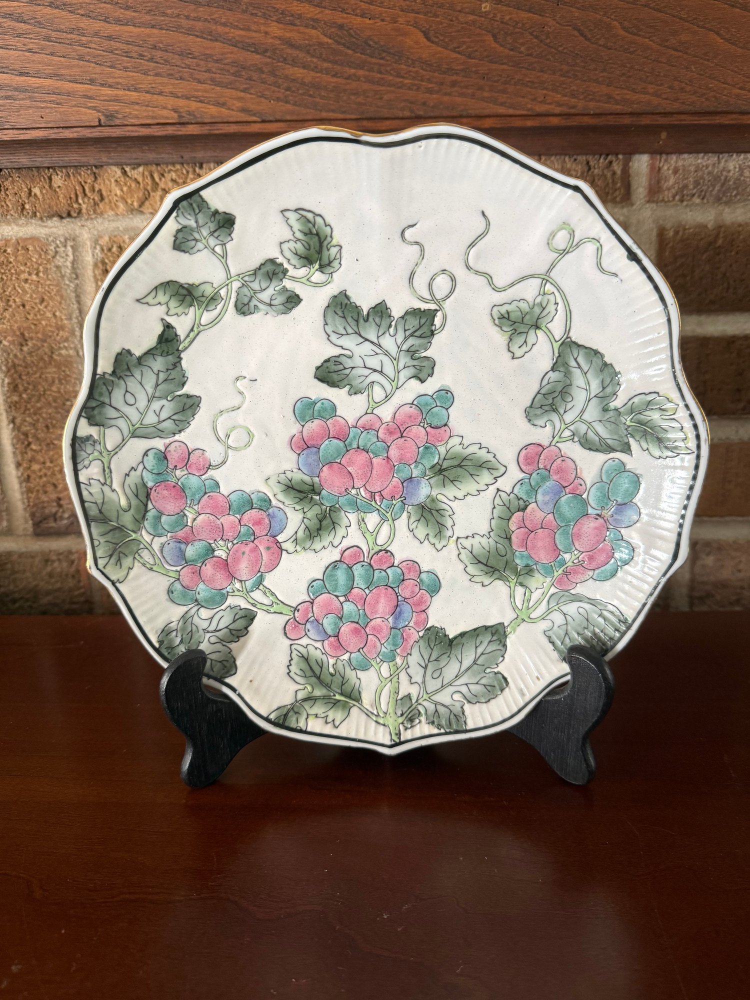 Vintage Andrea By Sadek Decorative Plate With Grape Motif.
