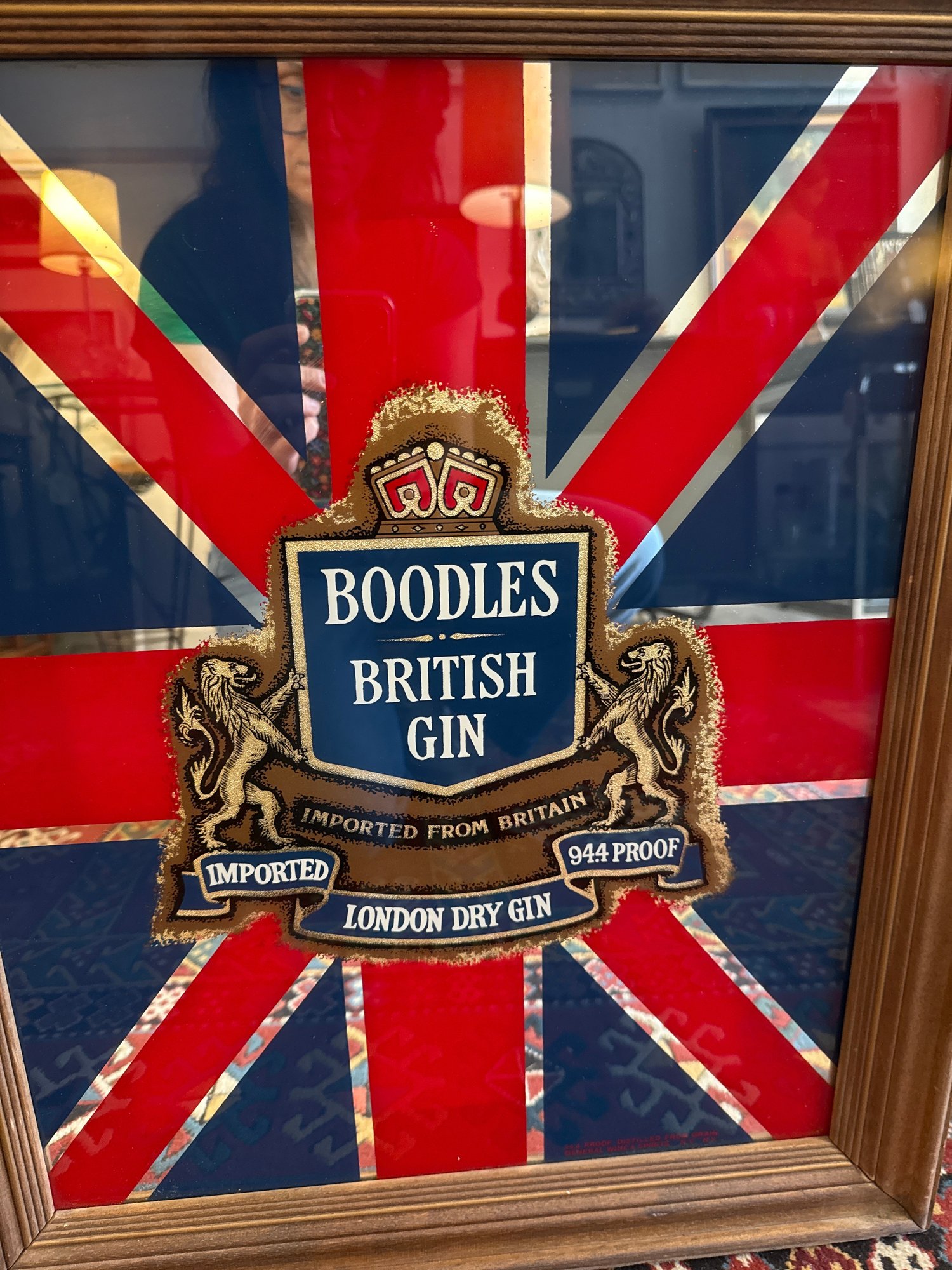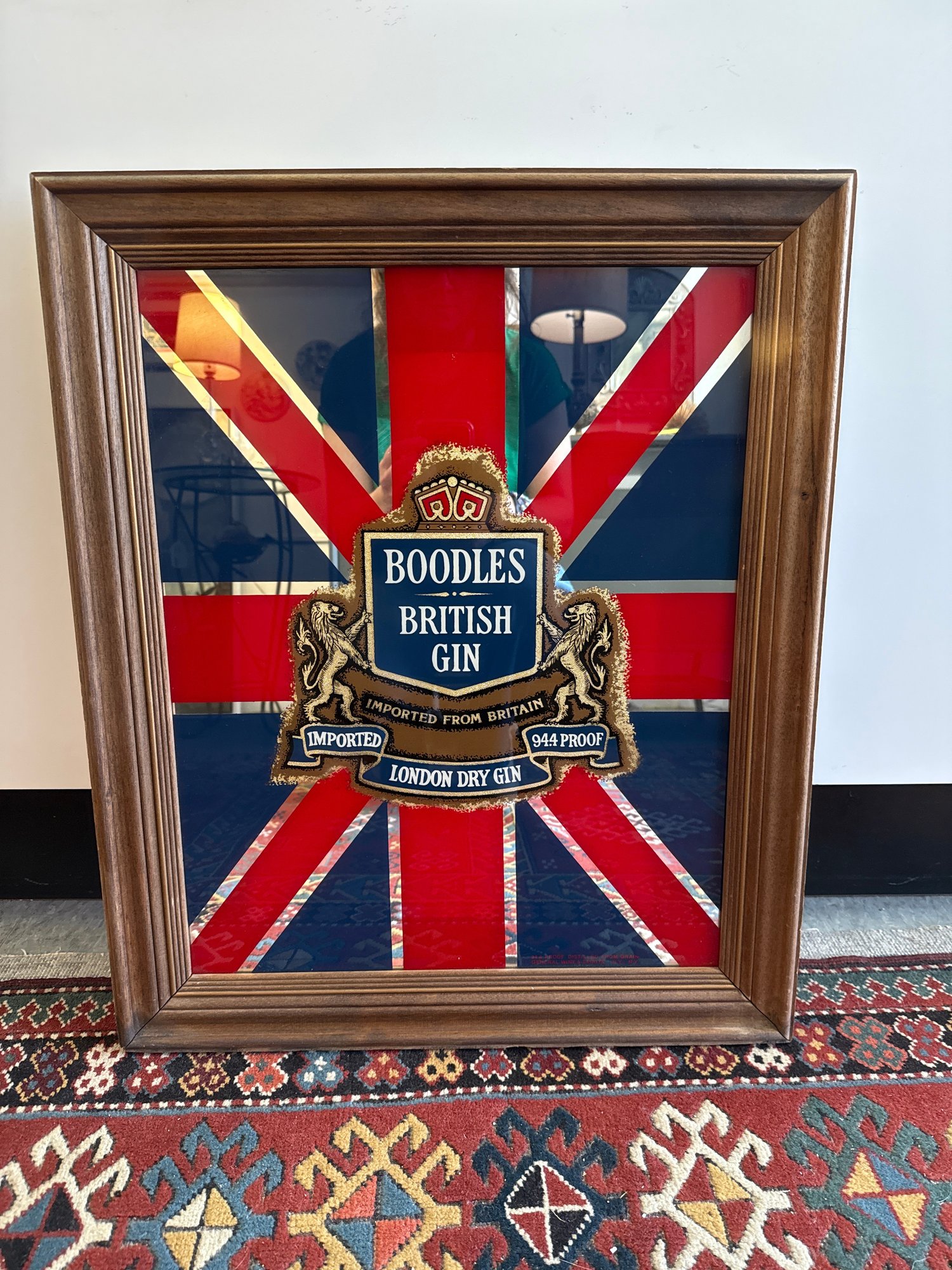 Vintage Boodles British Gin Advertising Mirror With Union Jack Motif