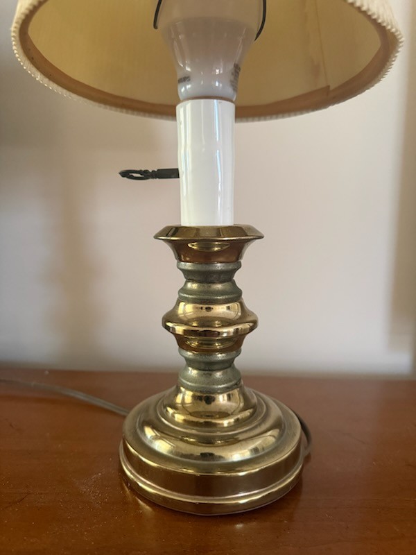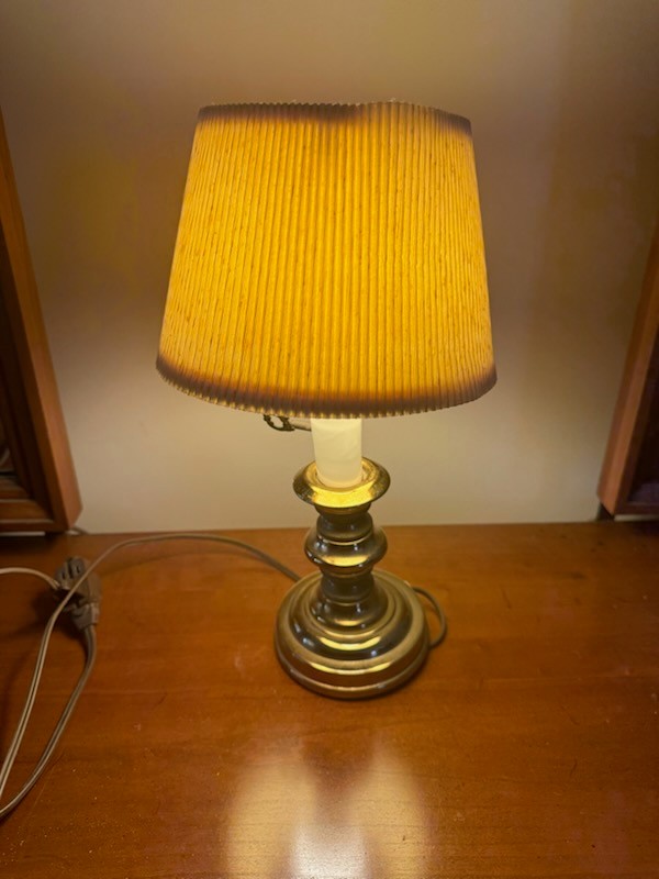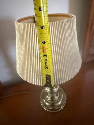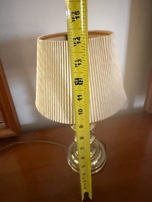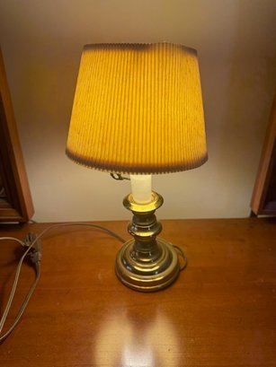 Vintage Brass Candlestick Table Lamp With A Pleated Shade.