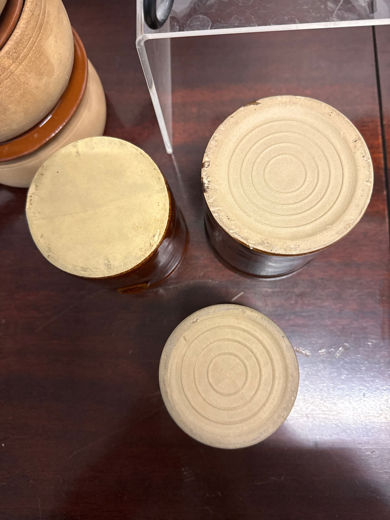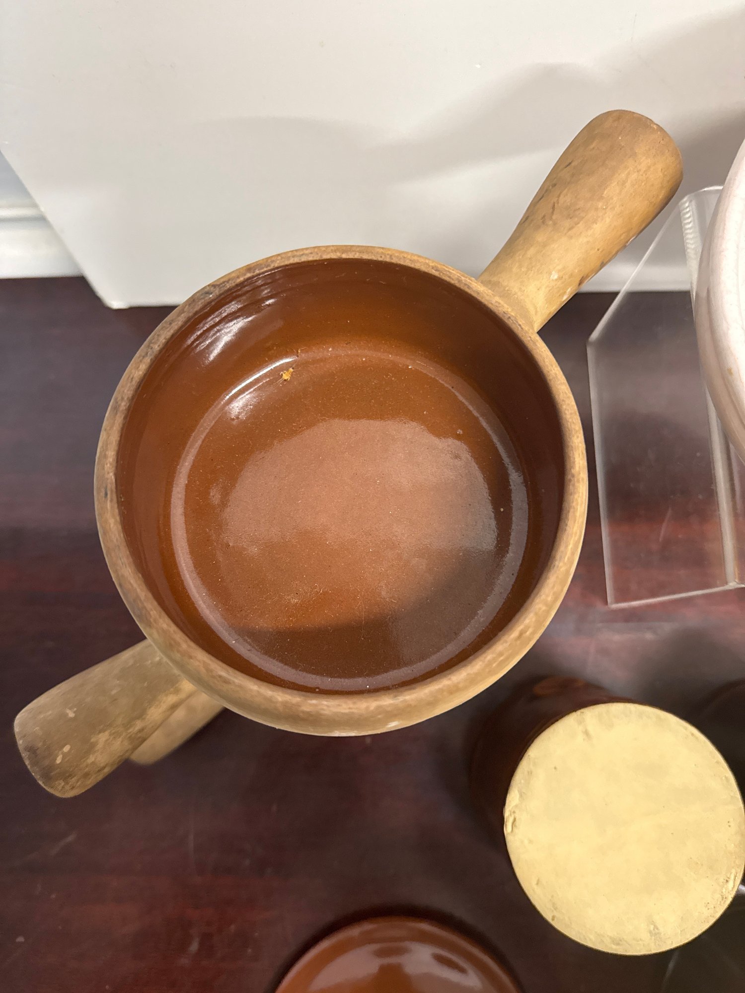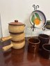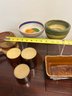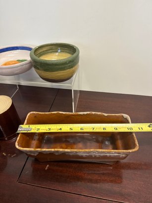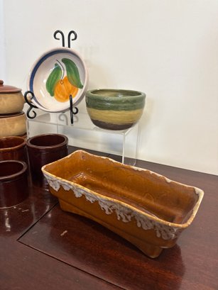 Vintage Brown Drip McCoy Planter, Brown Glazed Stoneware Crocks, & Bowls