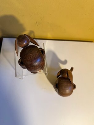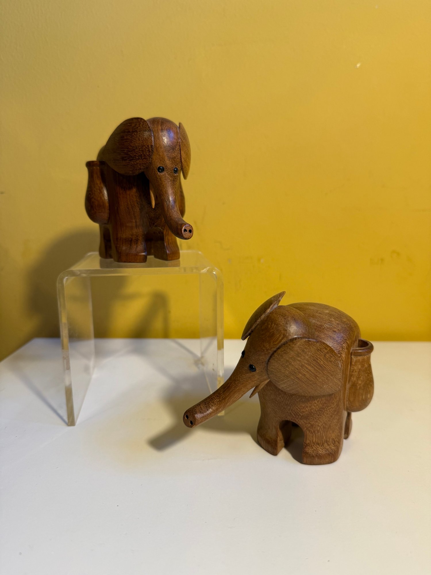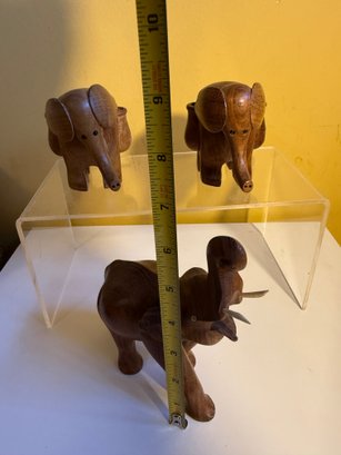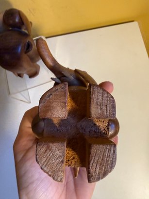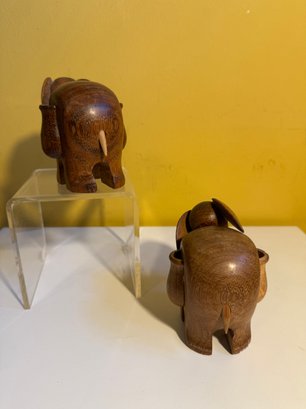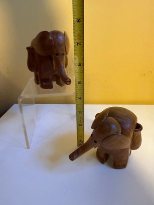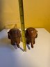 Vintage Carved Wooden Elephant Toothpick Holders With Bead Eyes & Wood Elephant