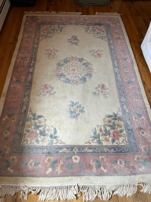 Vintage Chinese Peking Wool Rug With Floral Motifs And A Central Medallion