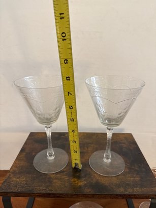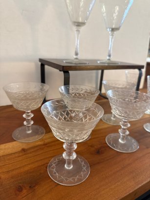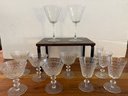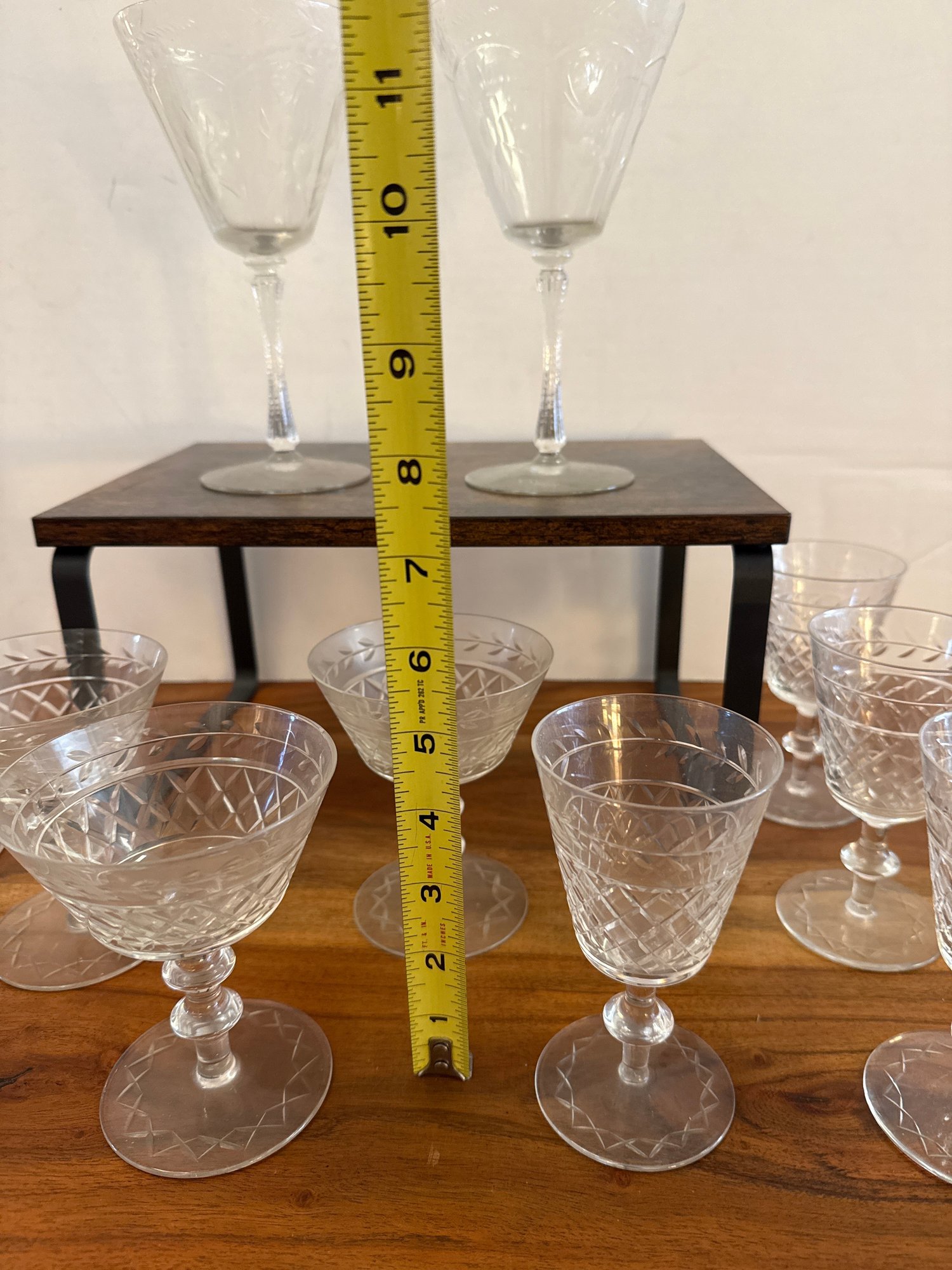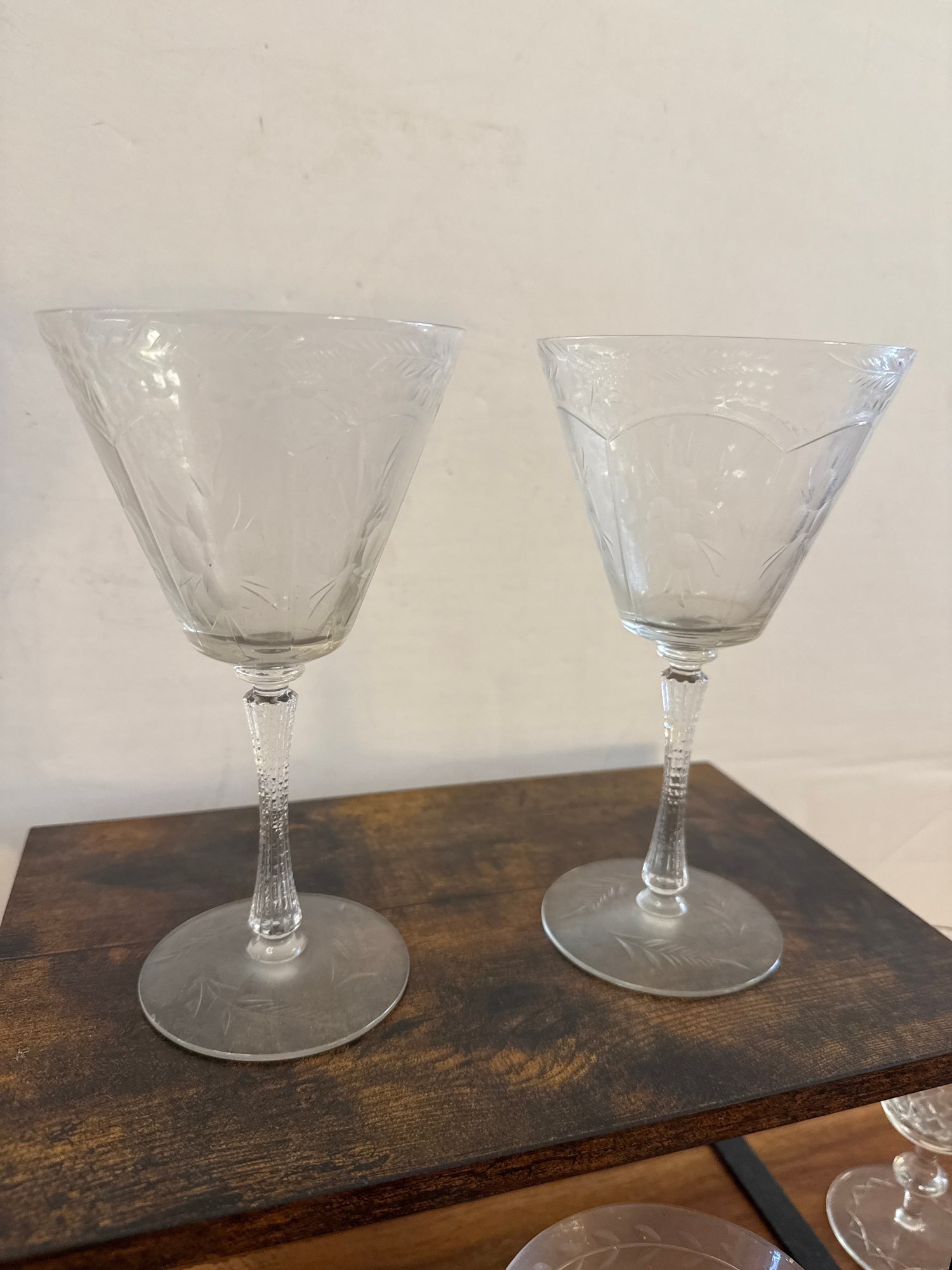 Vintage Cut Glass Wine Glasses With Etched & Diamond Patterns & Vintage Etched Grape Wine Glasses