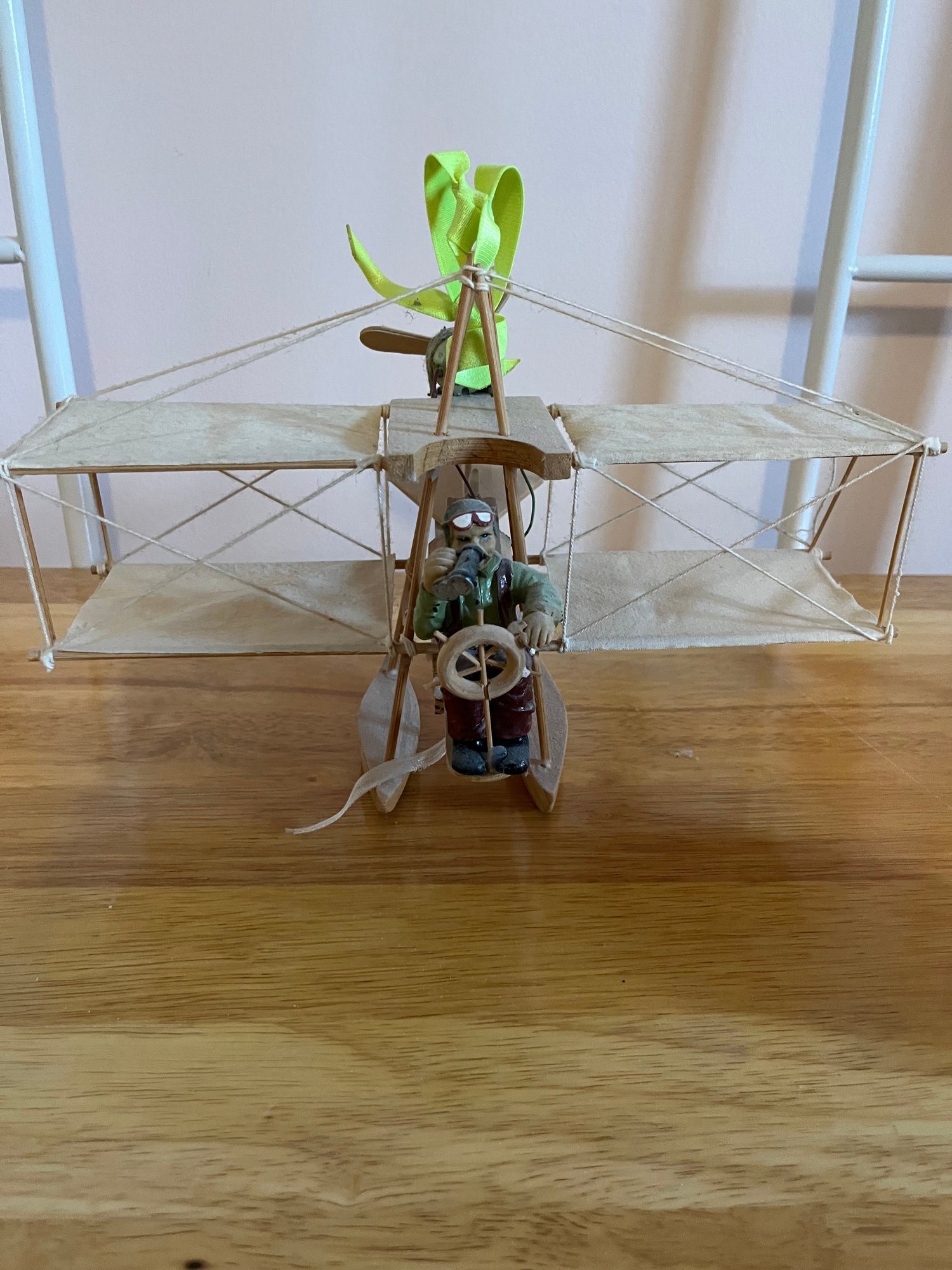 Vintage Folk Art Biplane Model With A Pilot Figure