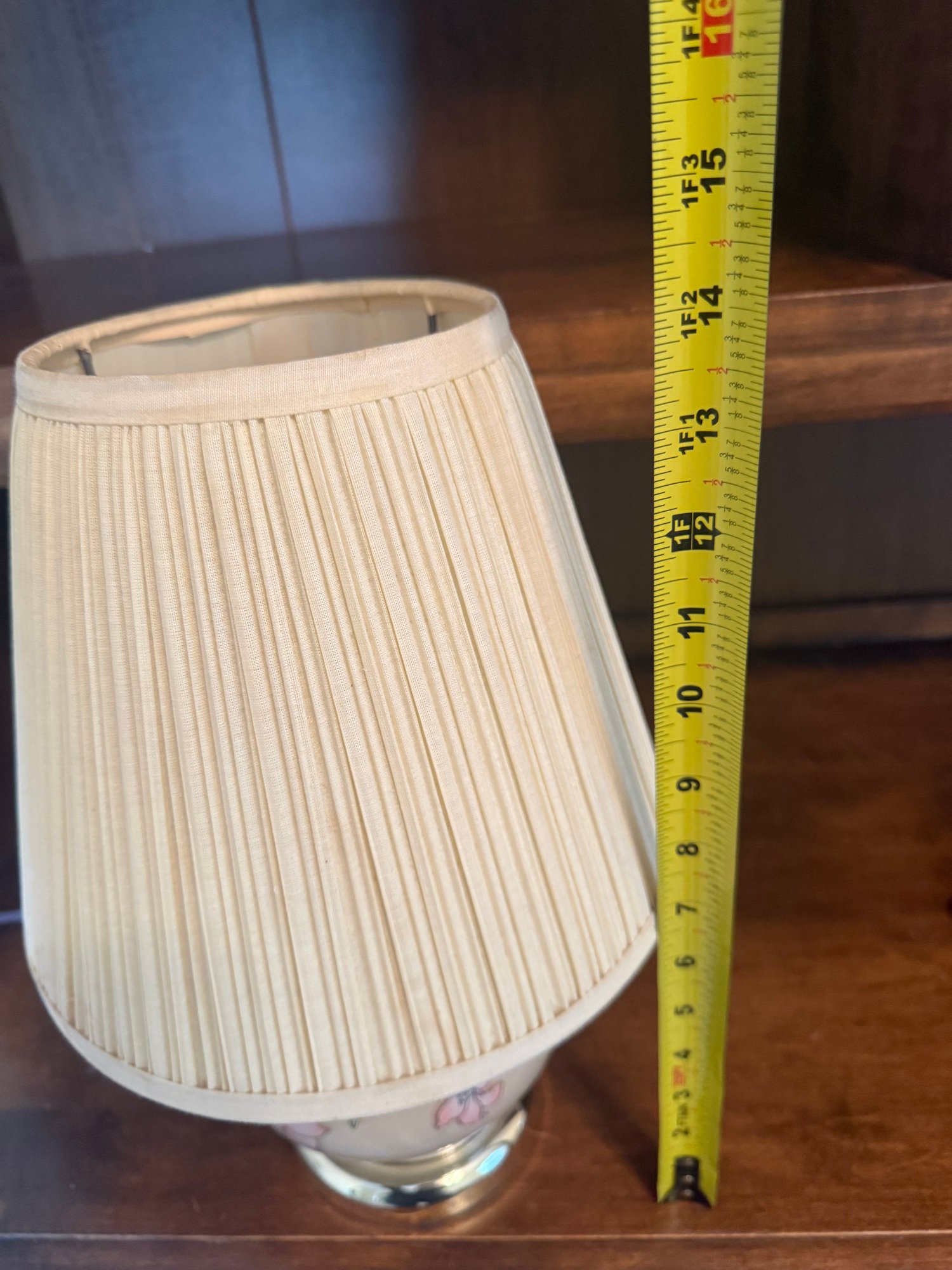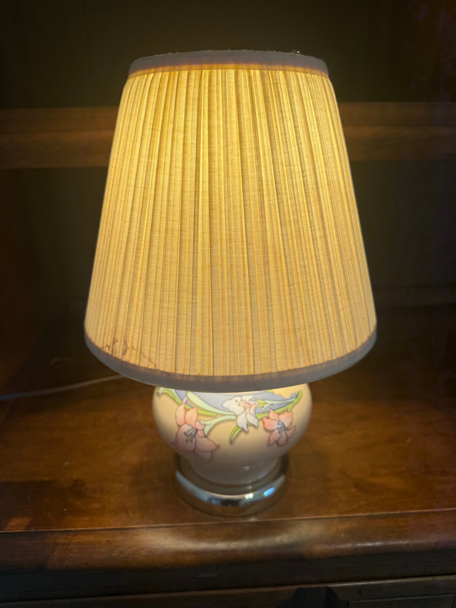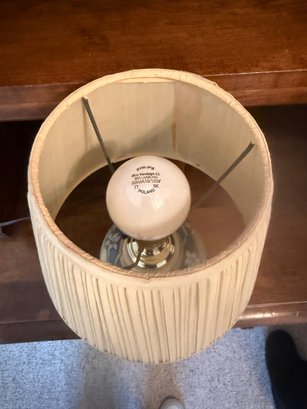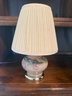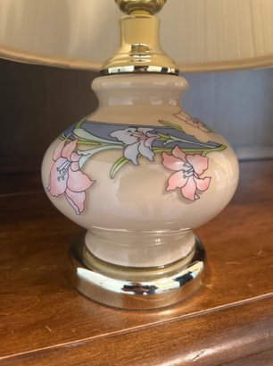 Vintage Hand-painted Porcelain Floral Table Lamp With Pleated Shade