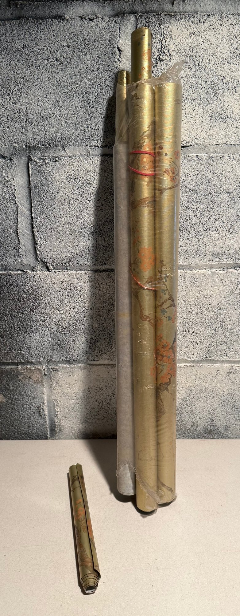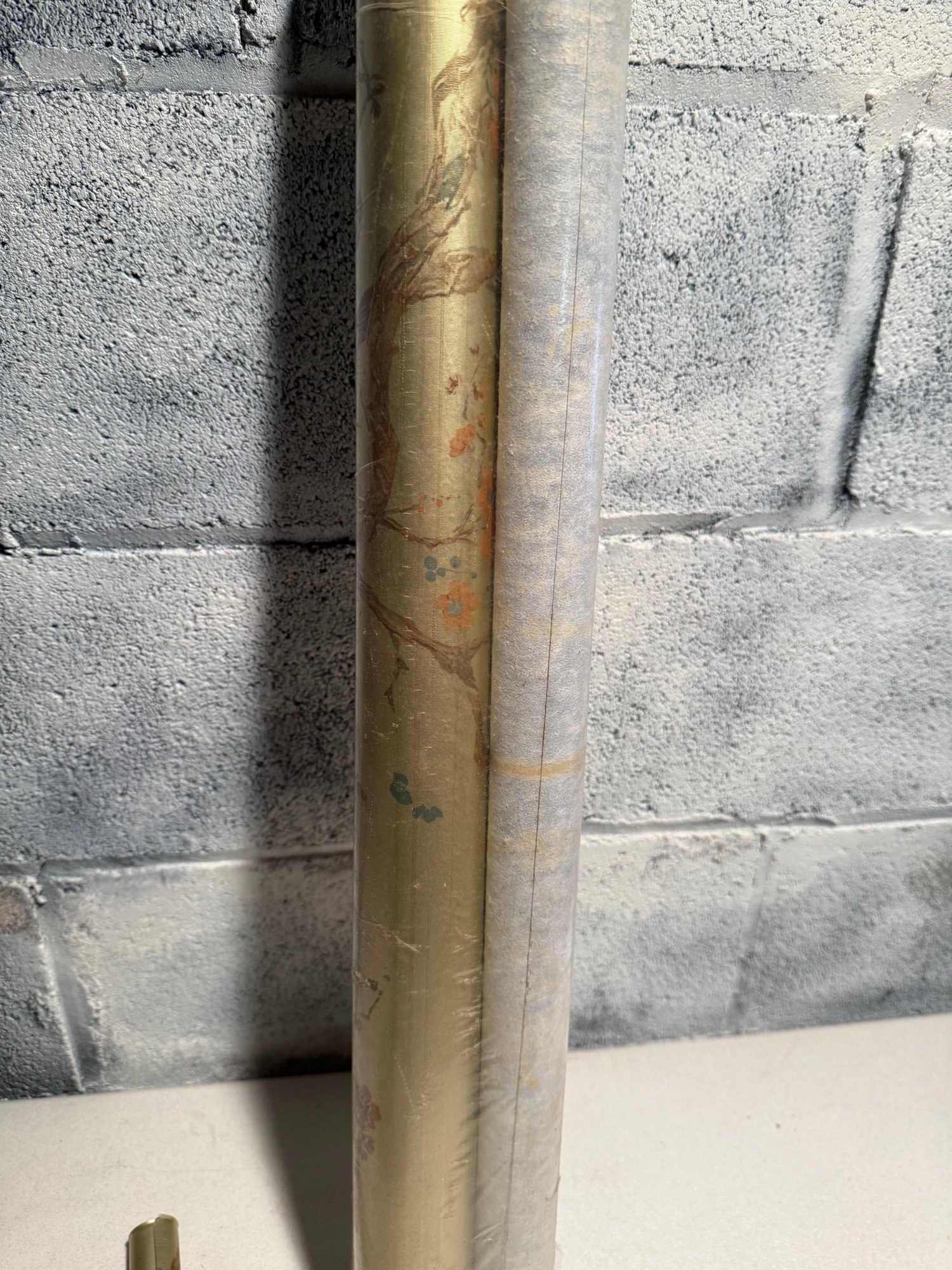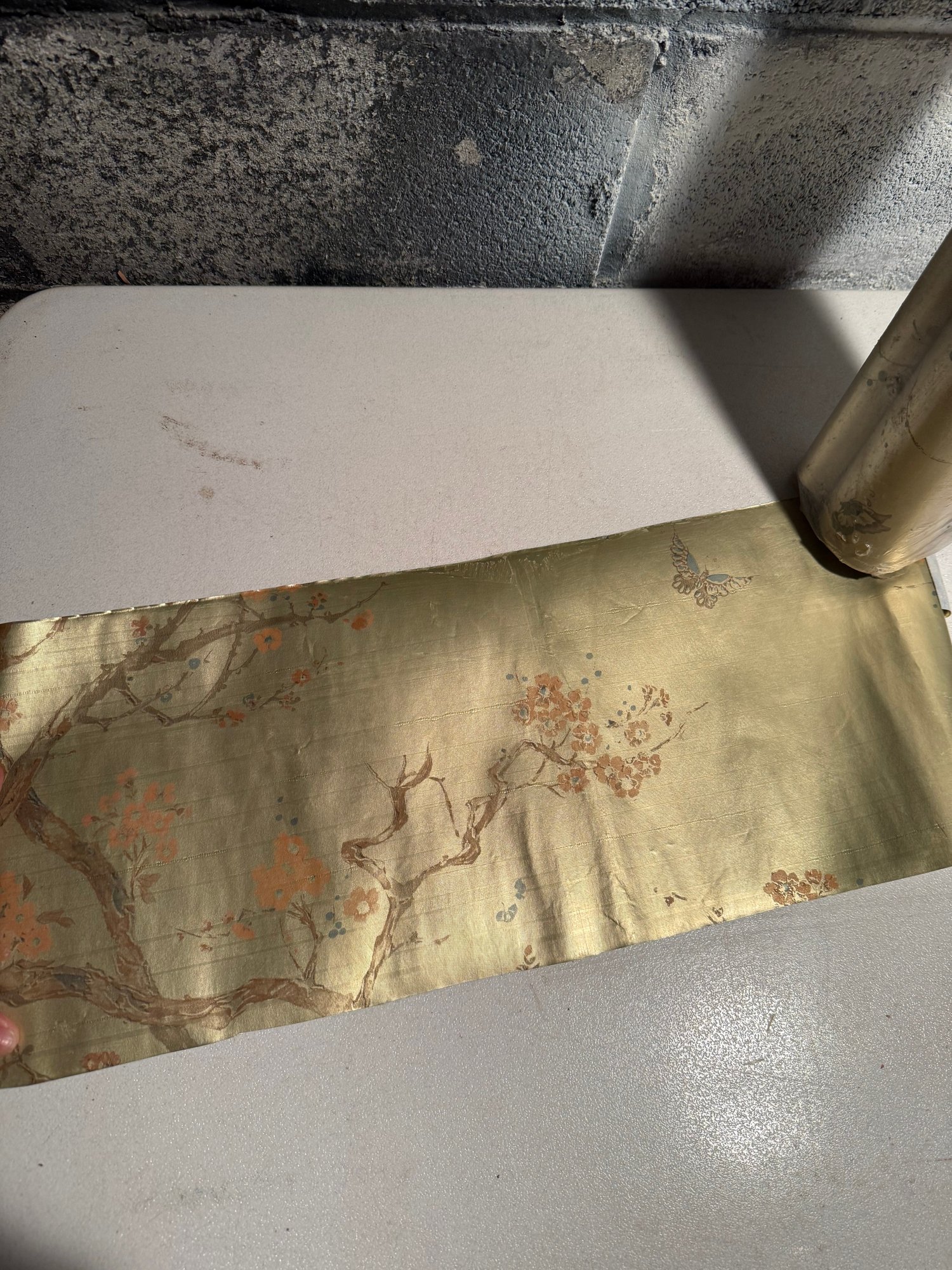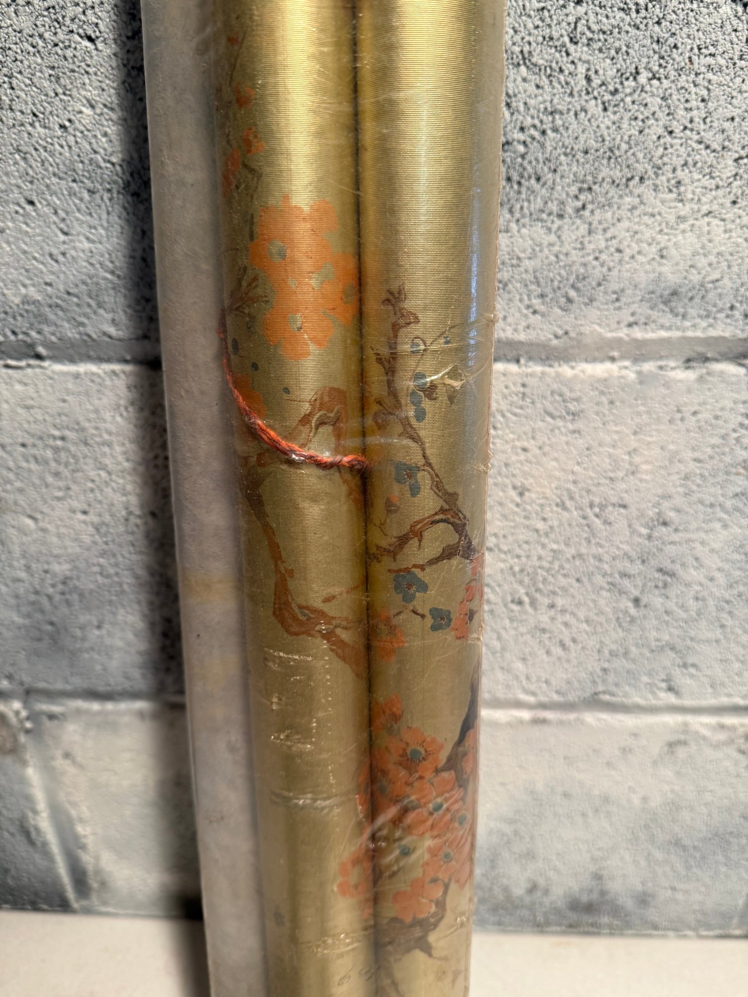 Vintage Hand-painted Silk Wallpaper Panel With Cherry Blossoms And Butterflies