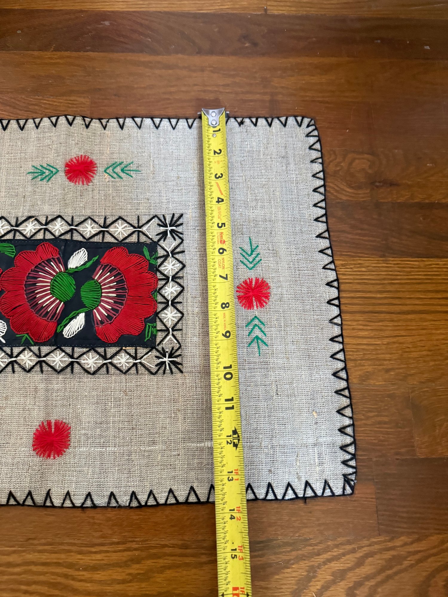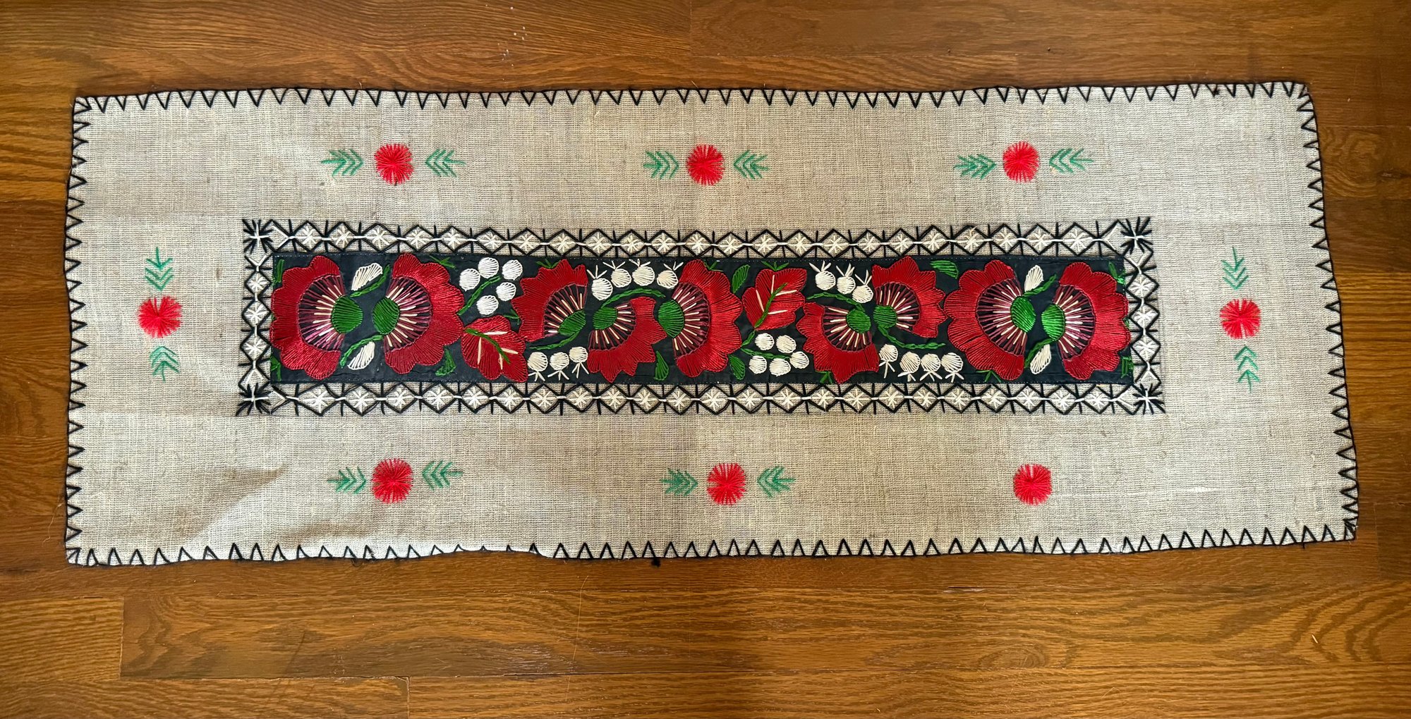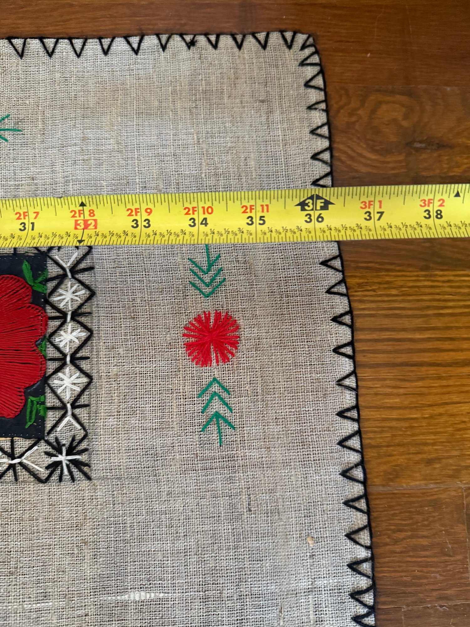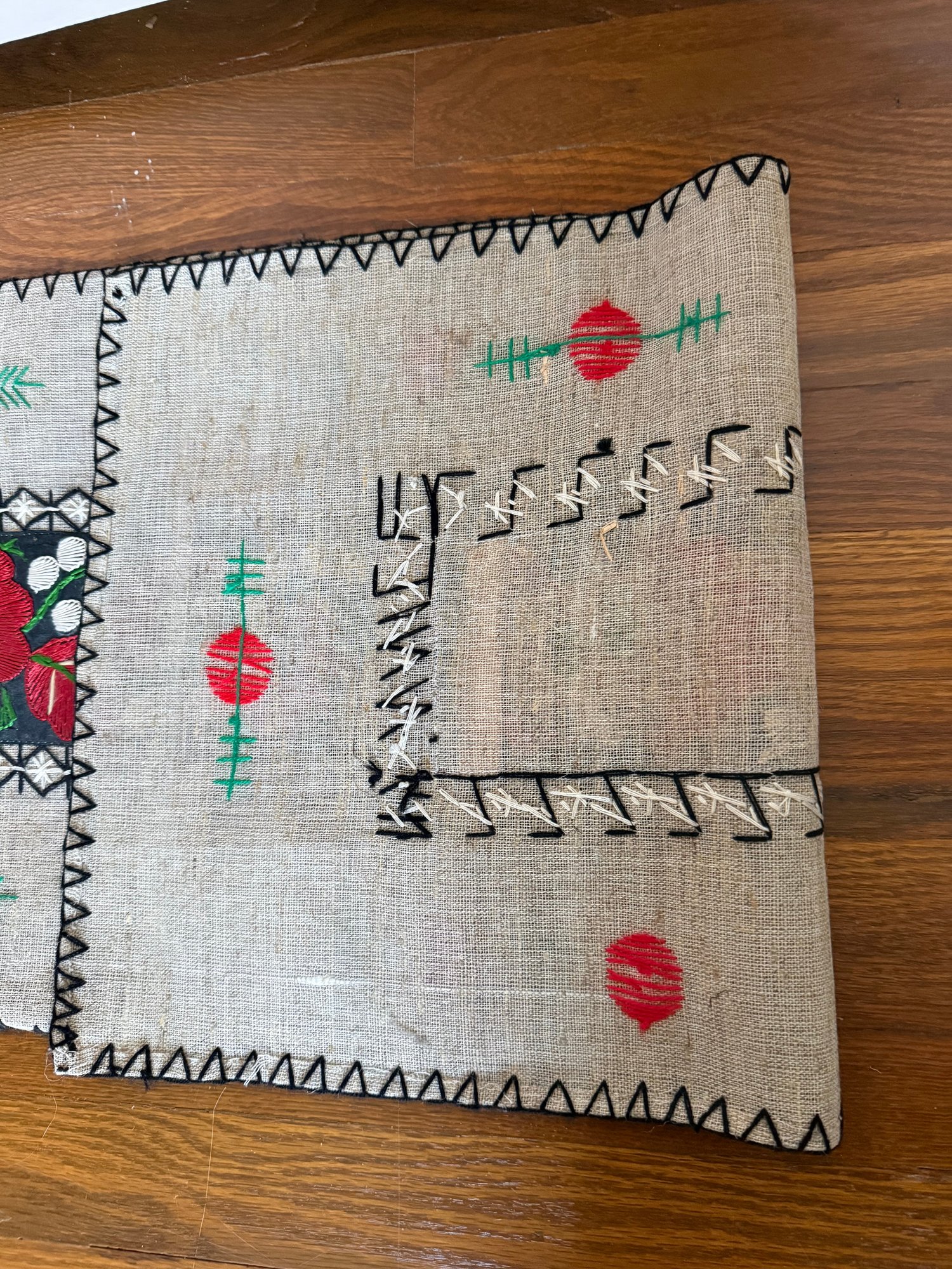 Vintage Hungarian Hand-embroidered Linen Table Runner With Floral Motifs