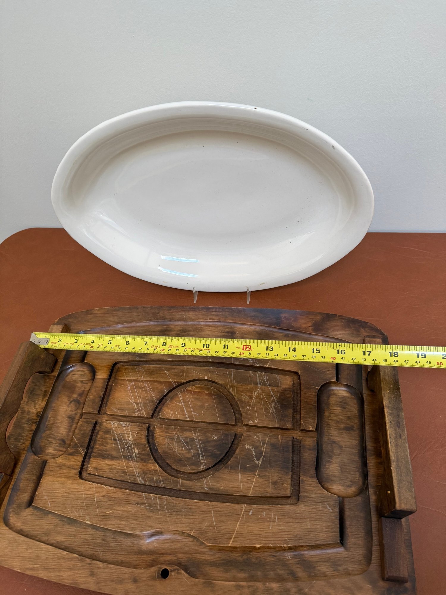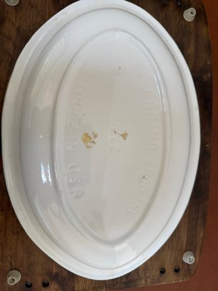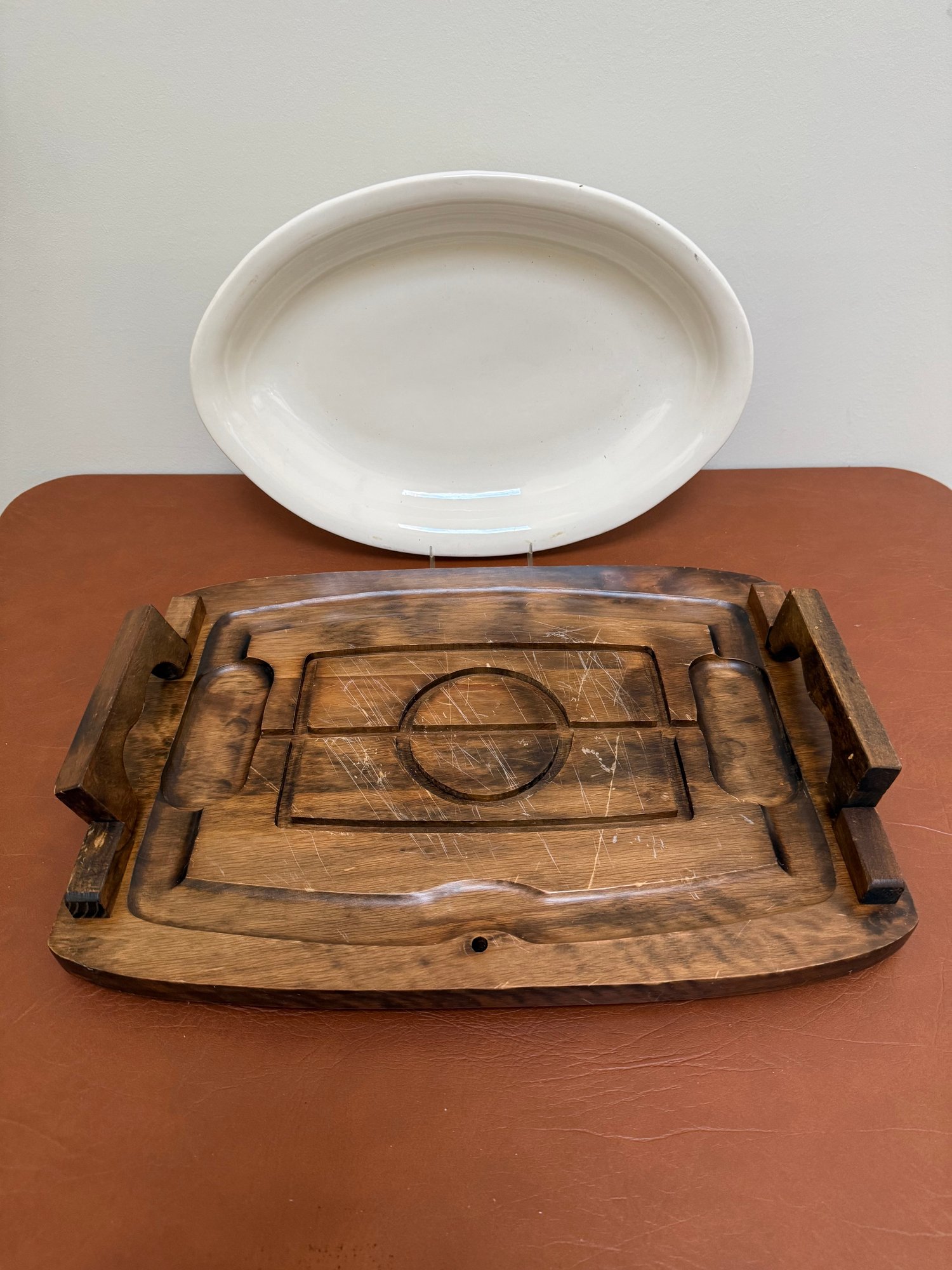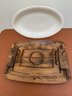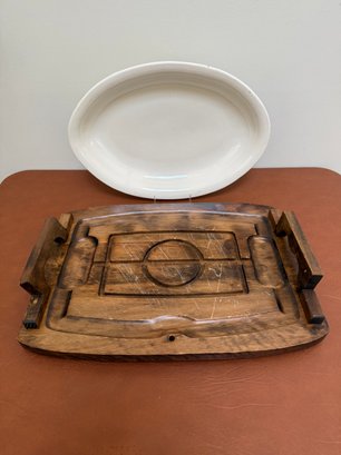 Vintage Japanese Wooden Carving Board With A White Oval Platter