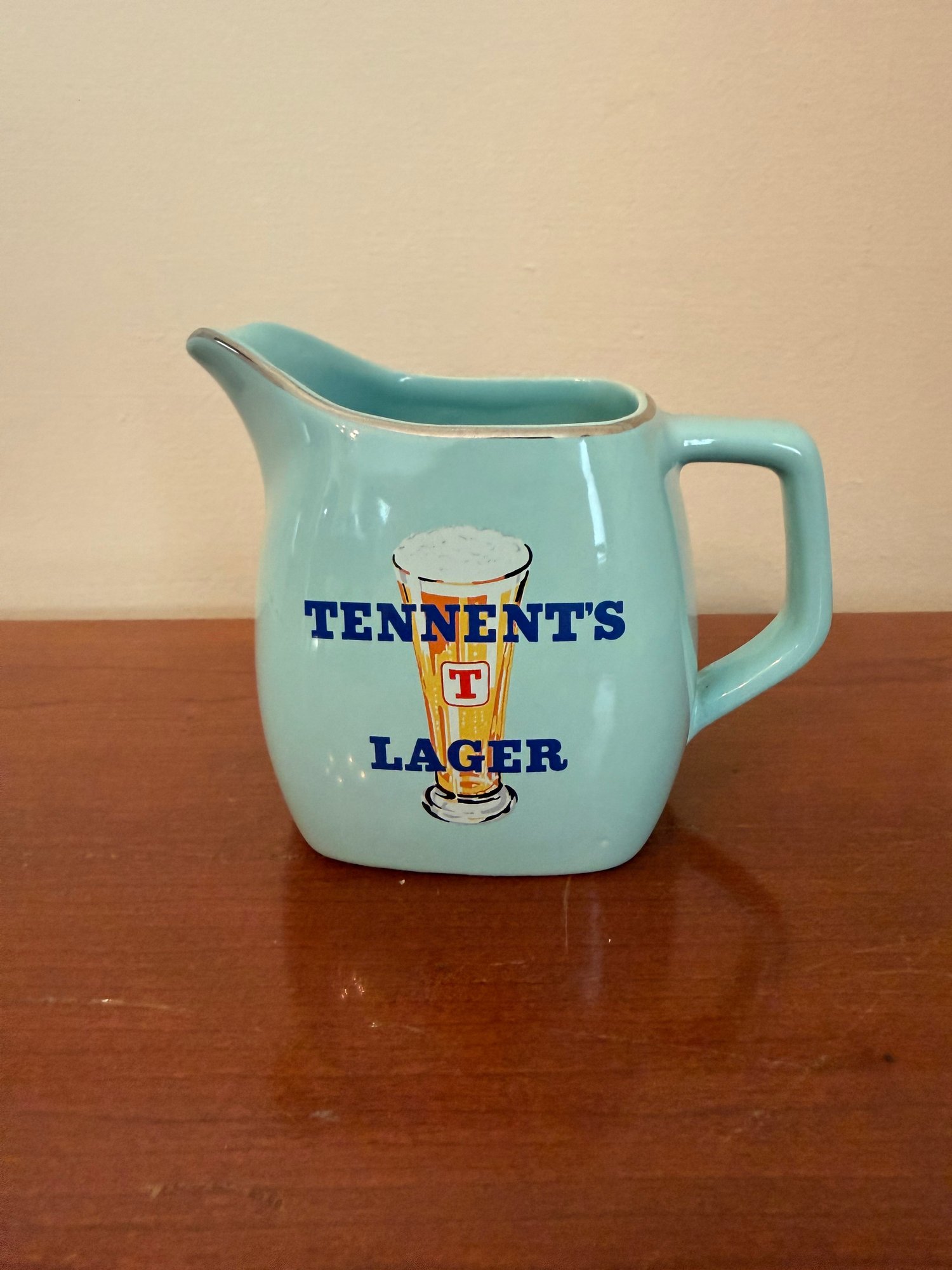 Vintage Light Blue Ceramic Tennent's Lager Advertising Jug