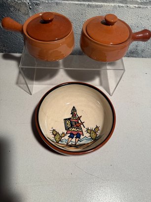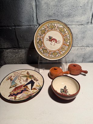 Vintage Mexican Ceramic Dish, Peruvian Platter/bowl And Terracotta Clay Pot
