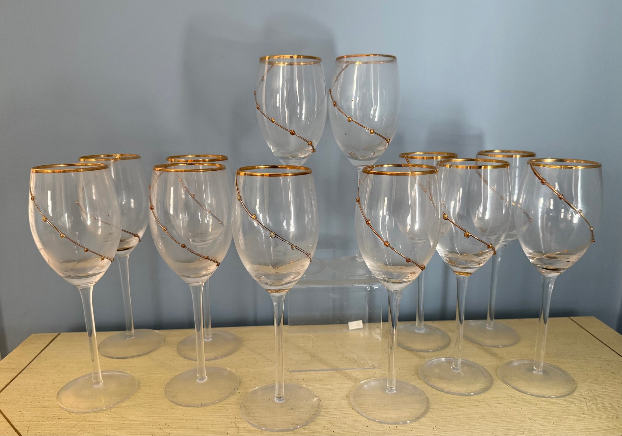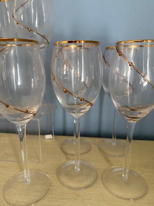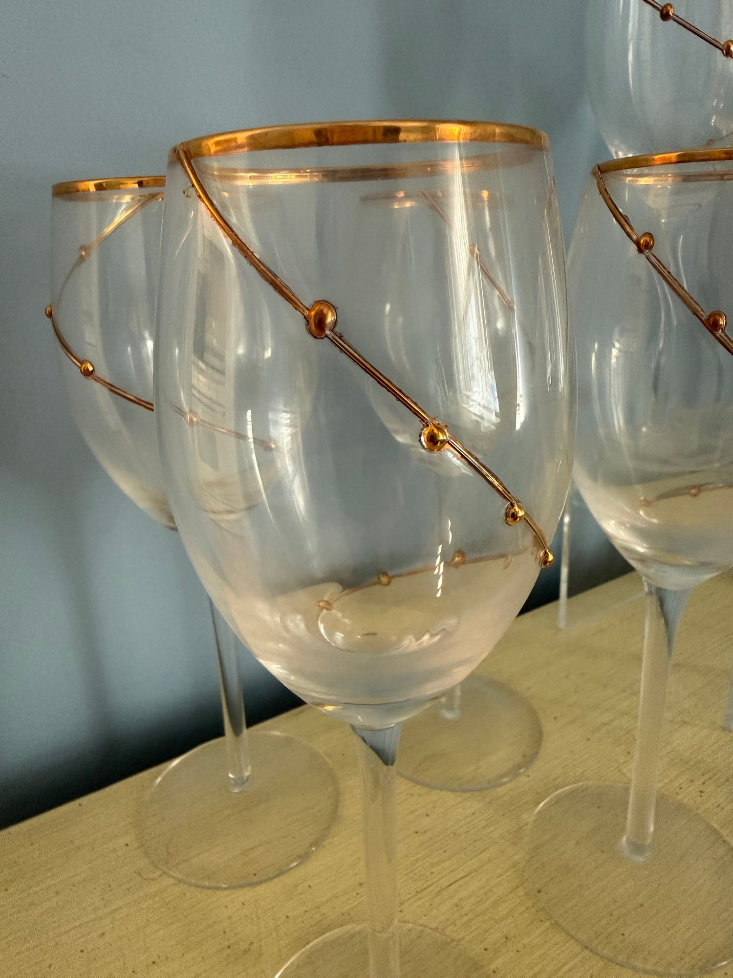 Vintage Pier 1 Imports Gold Dot Swirl Wine Glasses