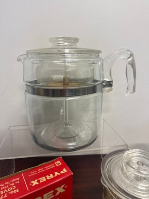 Vintage Pyrex Glass Percolator With Metal Accents And Original Box