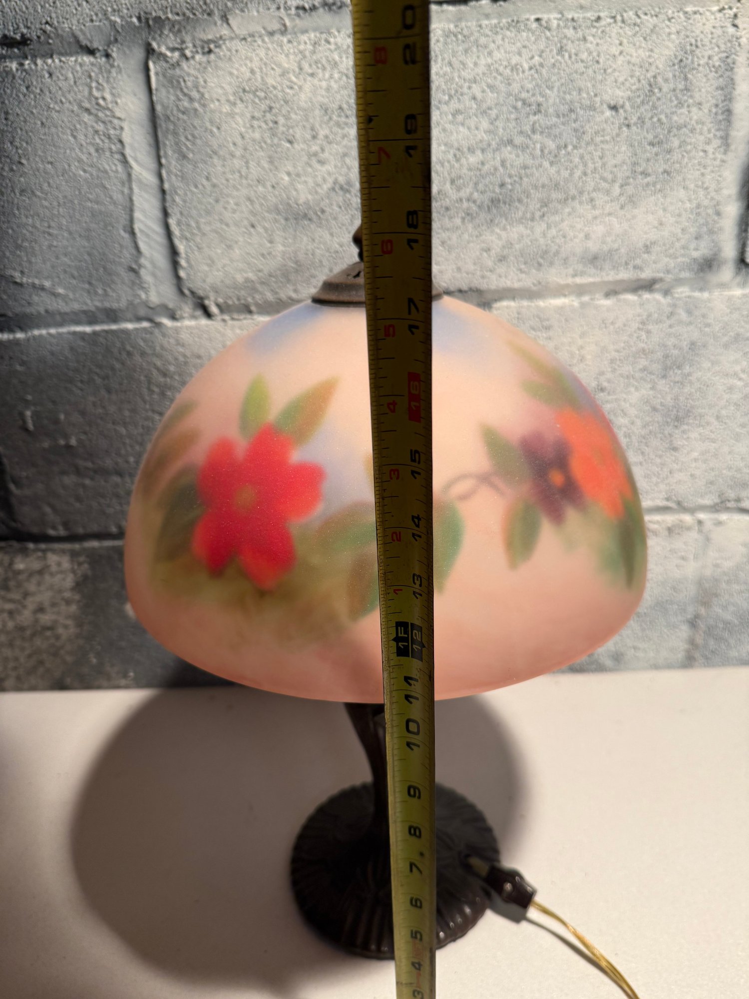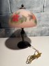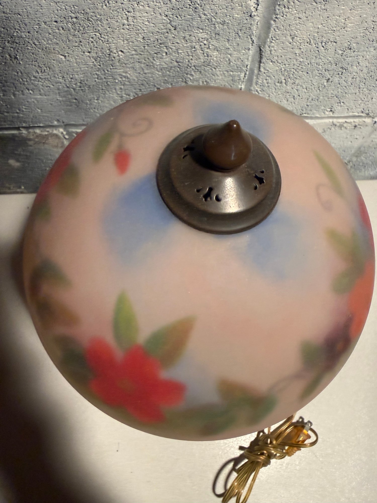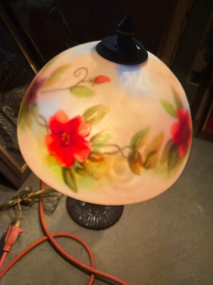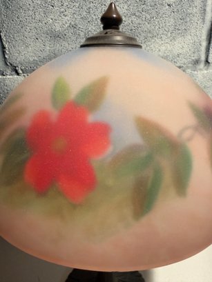 Vintage Reverse-painted Floral Glass Shade Table Lamp With A Metal Base