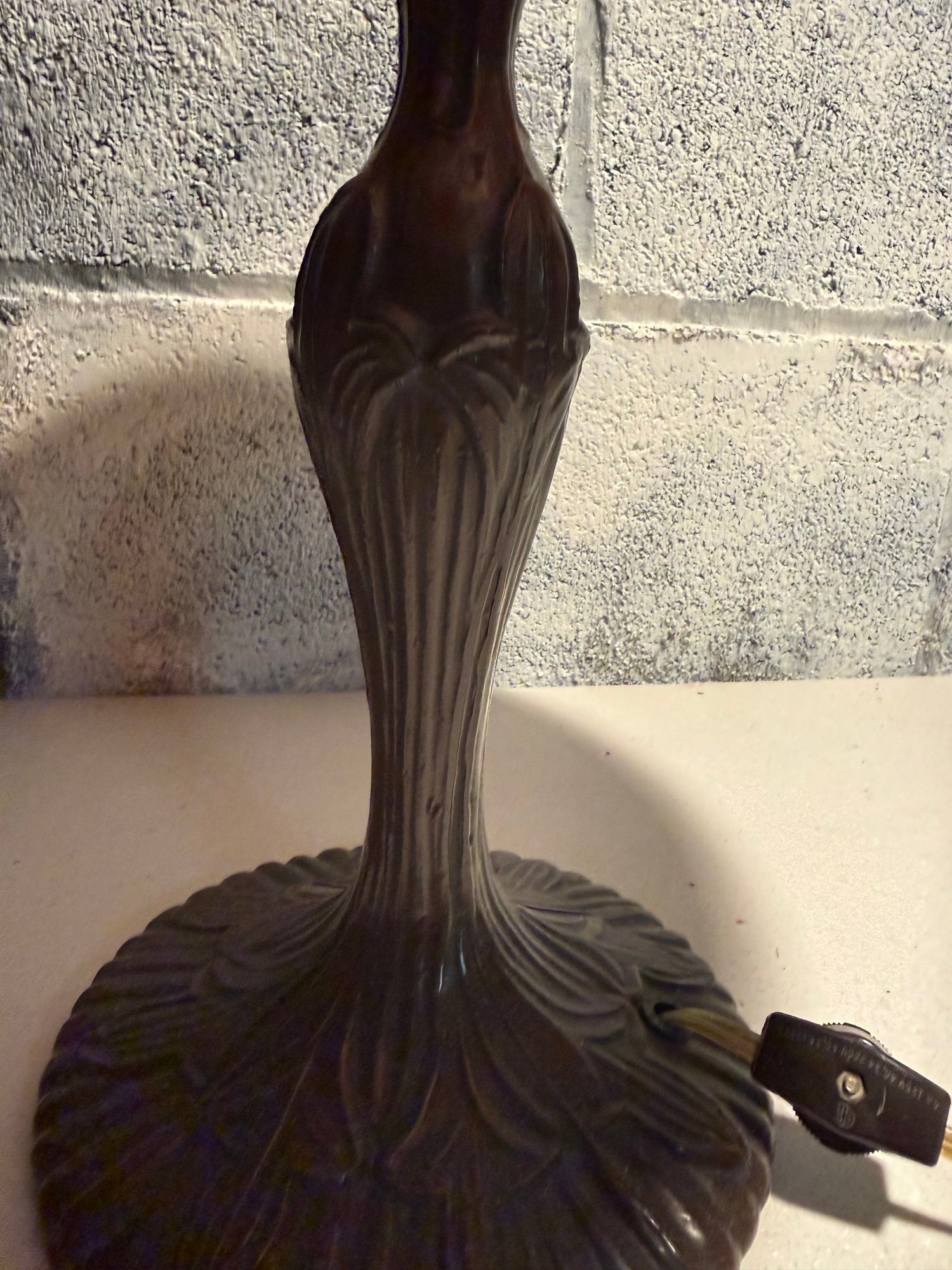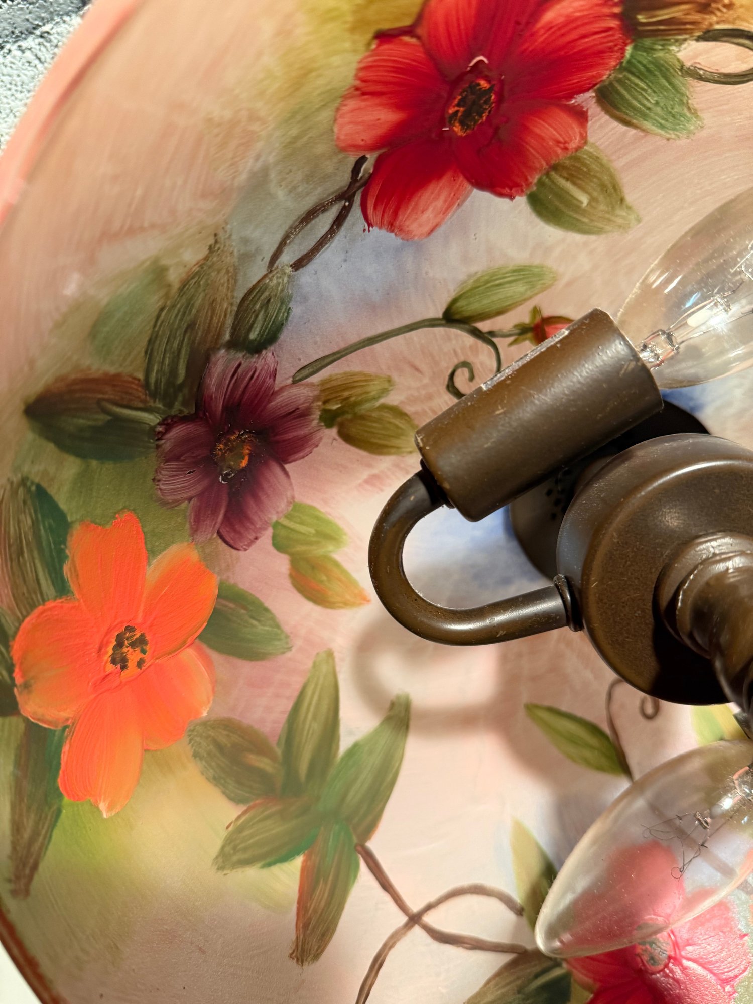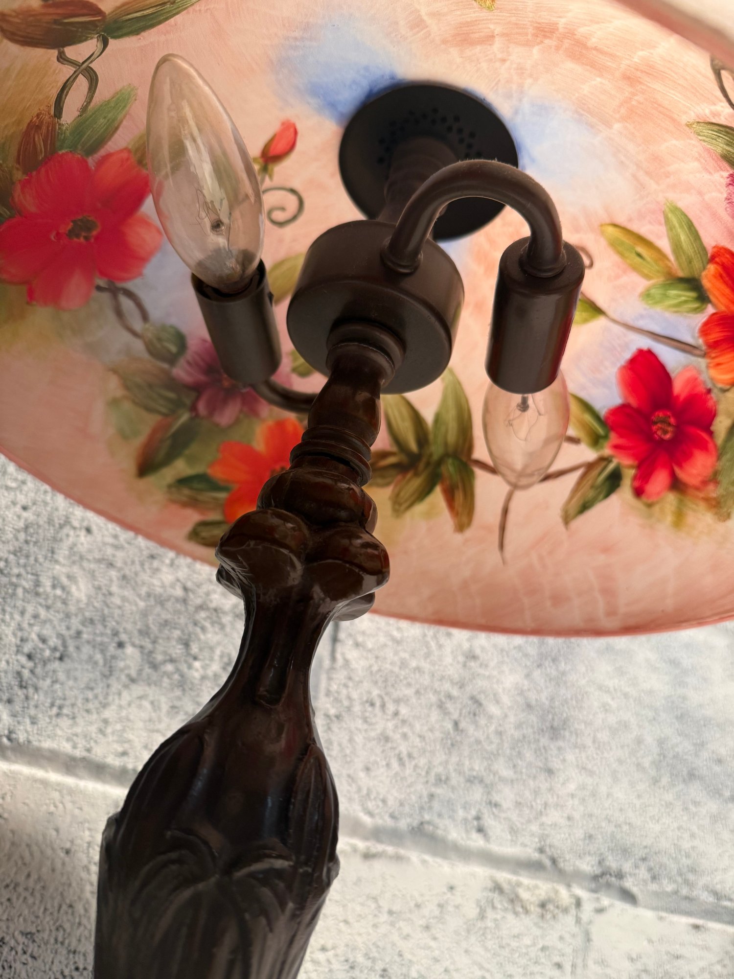 Vintage Reverse-painted Floral Glass Shade Table Lamp With A Metal Base