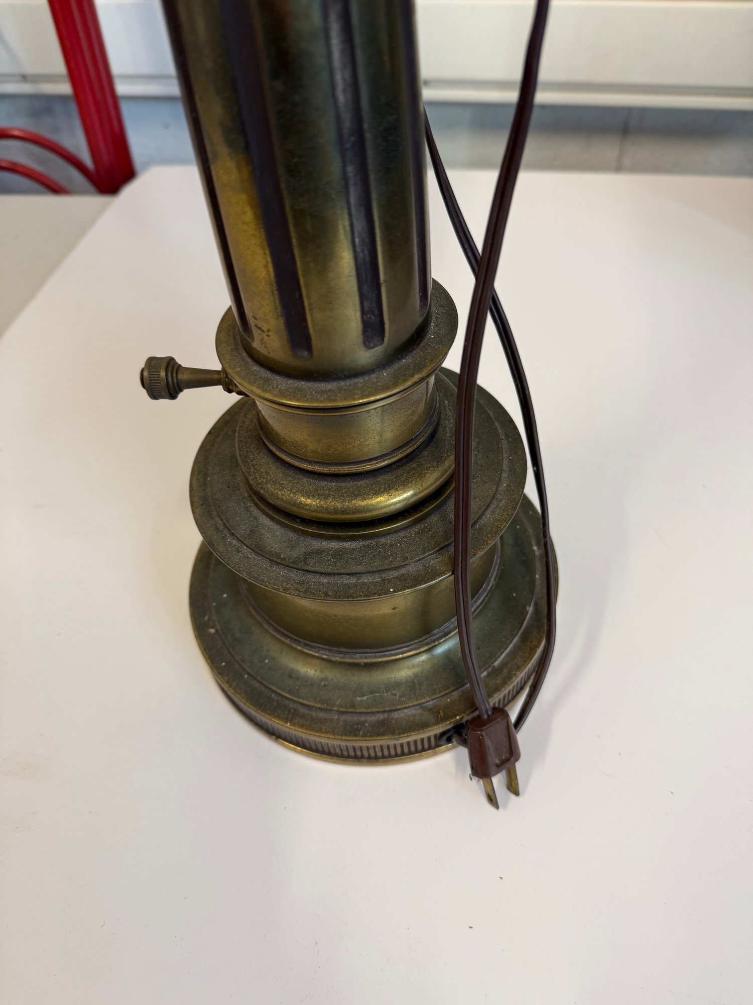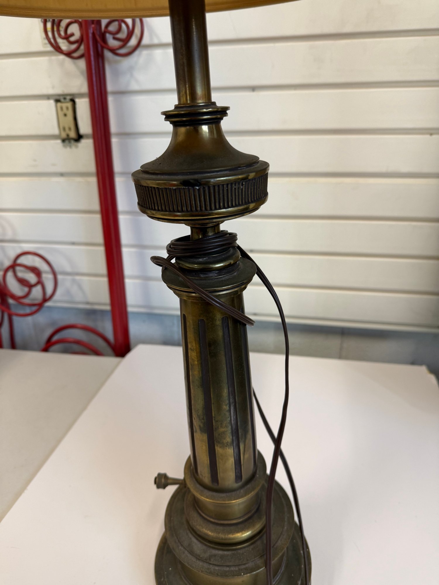 Vintage Stiffel Brass Urn-shaped Table Lamp With A Fabric Shade